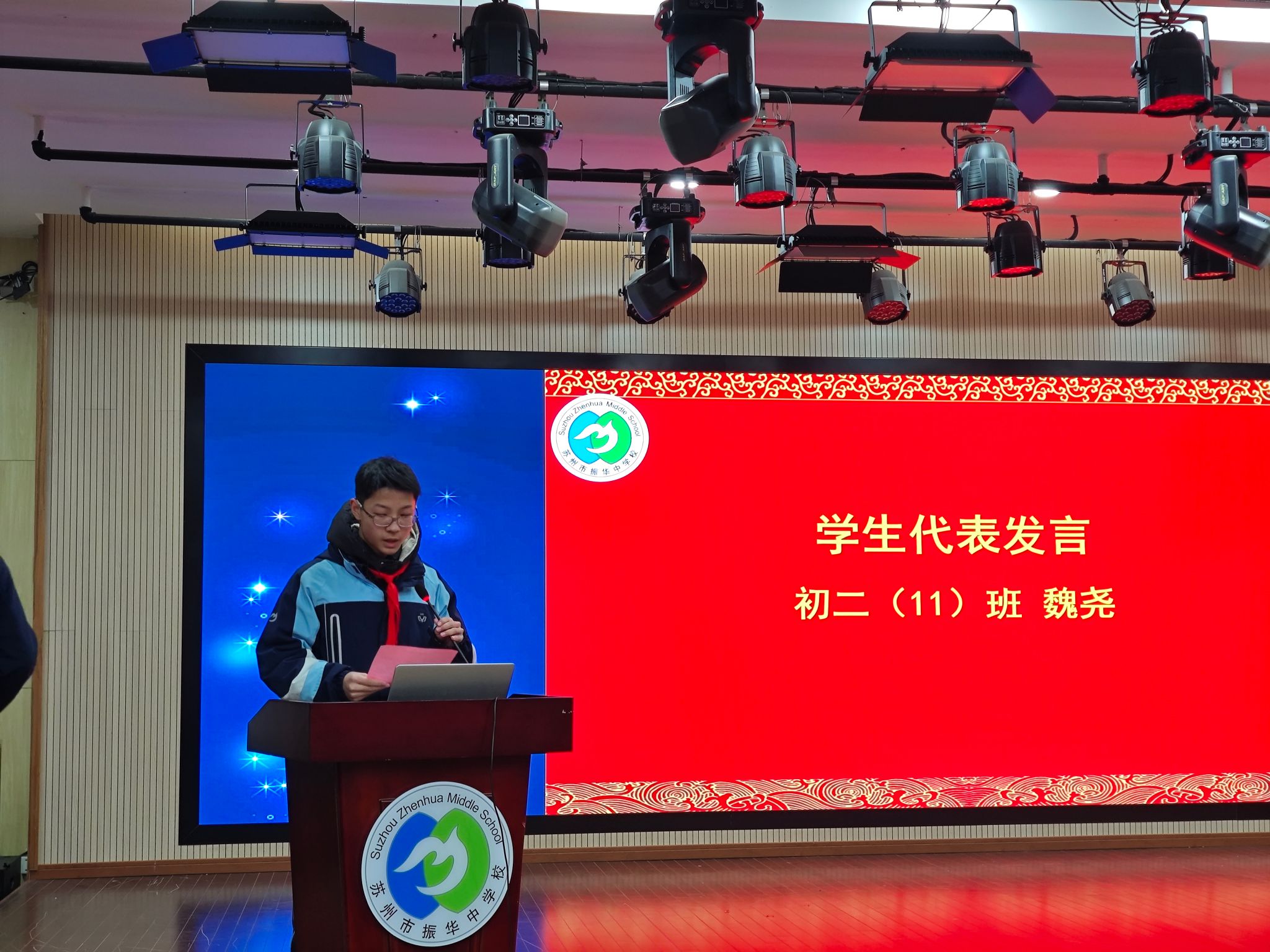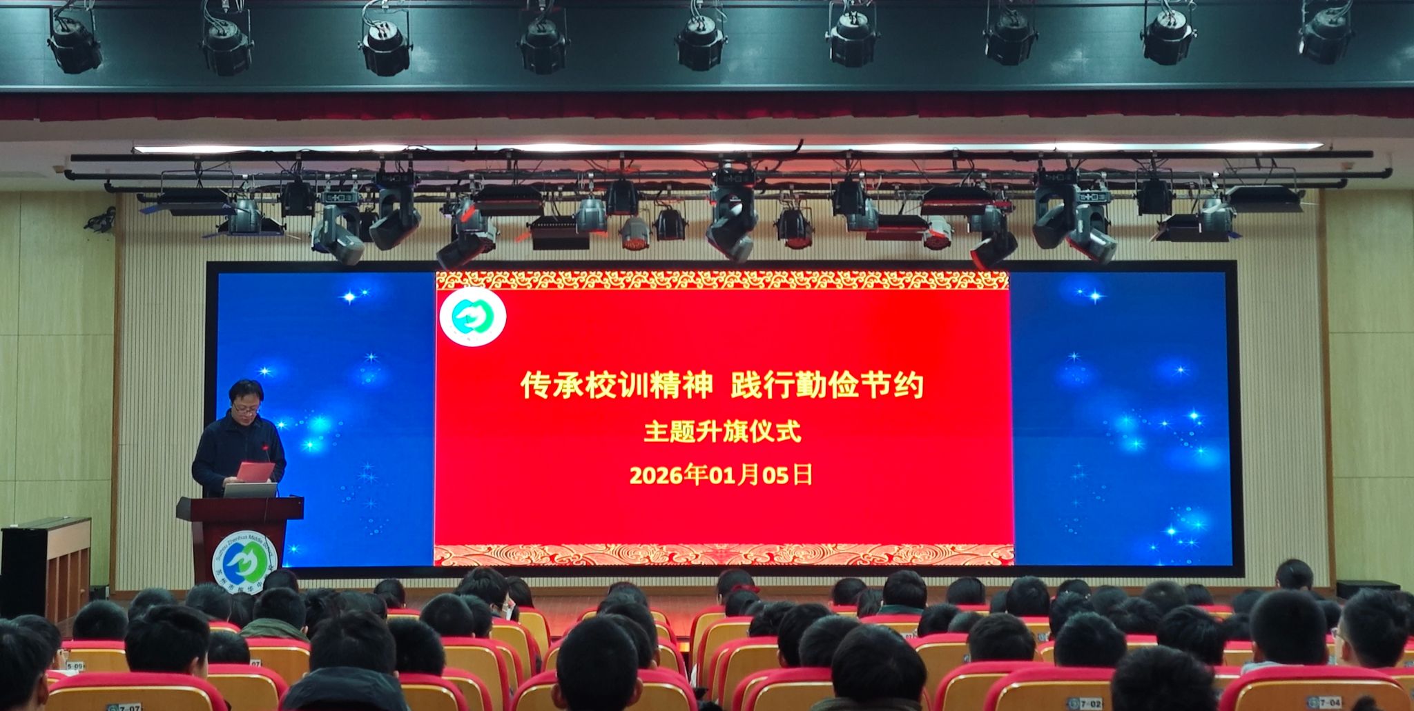 勤俭节约是中华民族的传统美德,是修身立德的重要准则,更是新时代青少年应当践行的良好风尚。为传承校训精神,培育学生节俭品格,2026年1月5日上午,苏州市振华中学校全体师生齐聚泽慧厅,共同参加“传承校训精神 践行勤俭节约”主题升旗仪,本次升旗仪式由德育处副主任陈沛老师主持。
