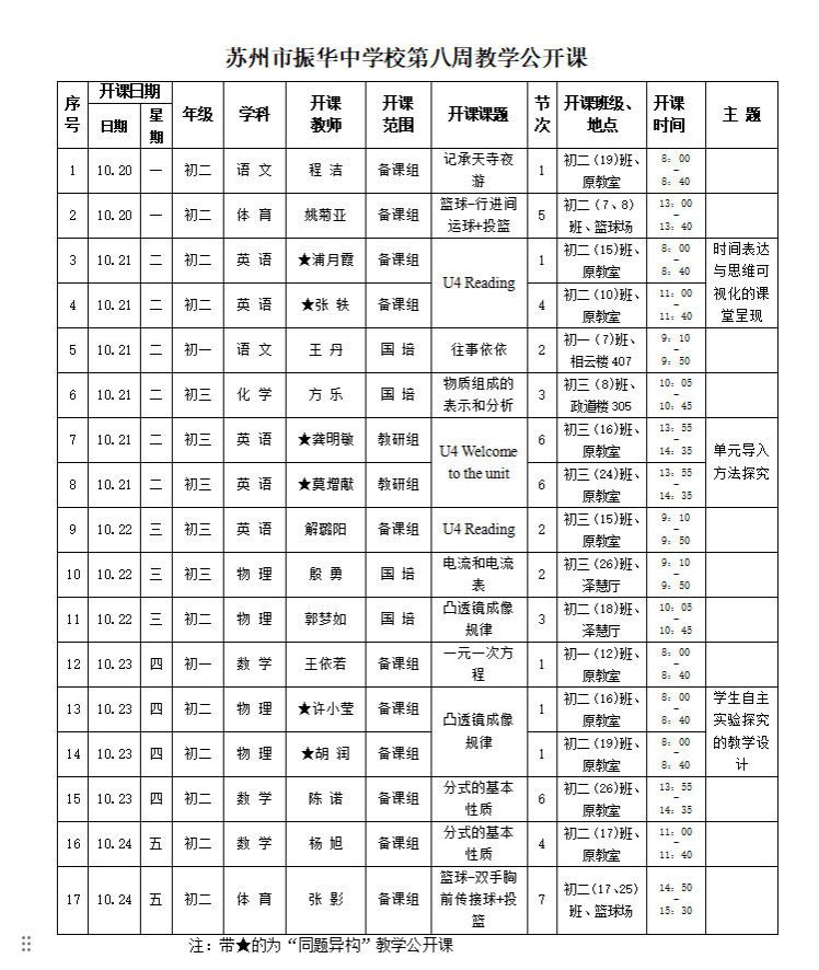 苏州市振华中学校第六、七周教学公开课