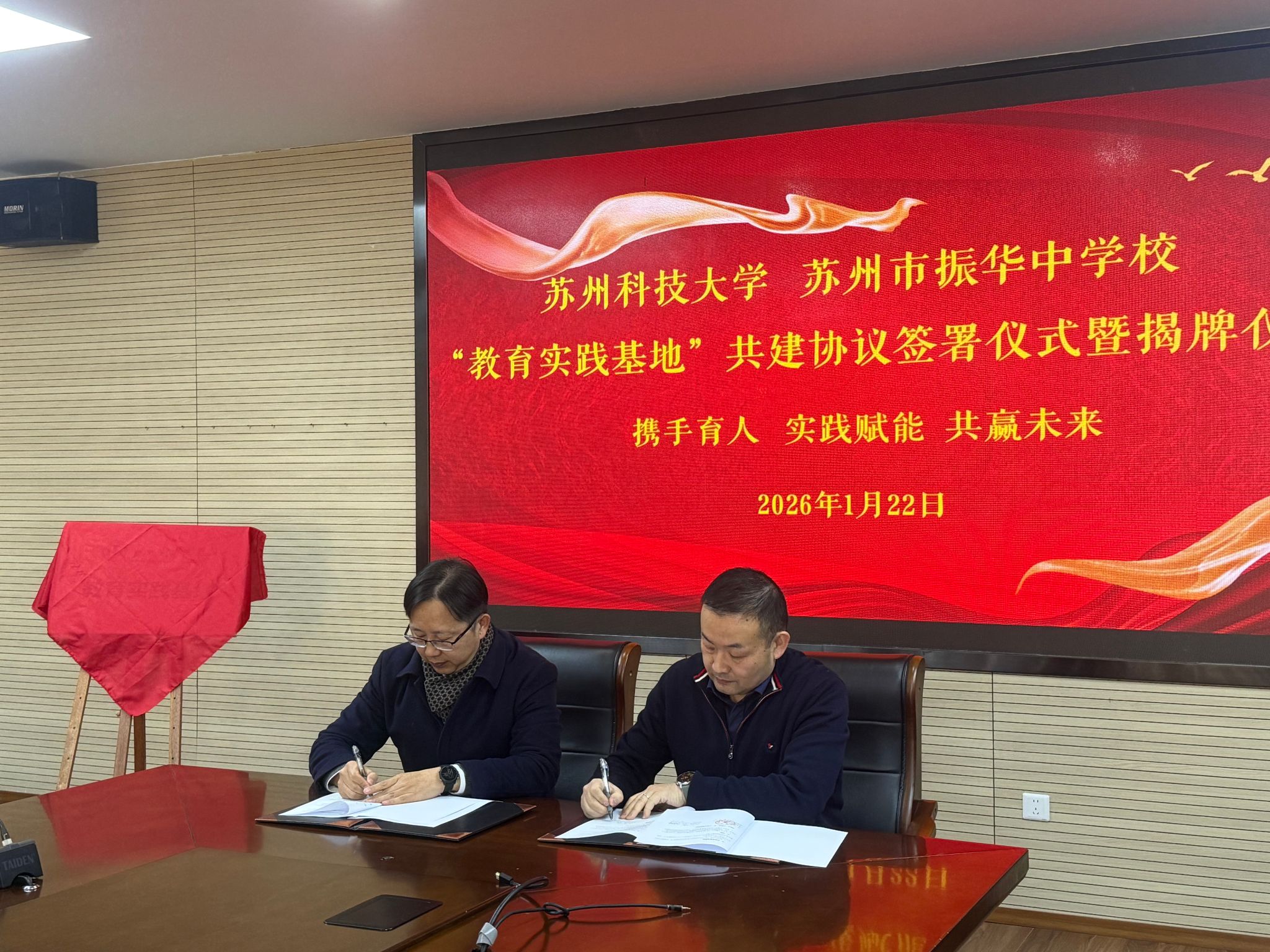 2026年1月22日,苏州市振华中学校与苏州科技大学共建“教育实践基地”协议签署仪式暨揭牌仪式在苏州市振华中学校举行。