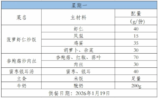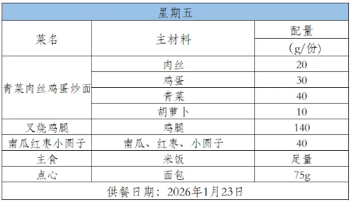 2025-2026学年第一学期第二十一周菜谱(1月19日-1月23日)