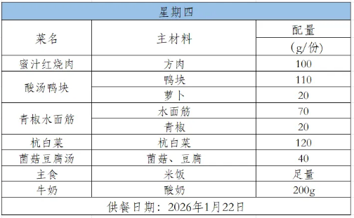 2025-2026学年第一学期第二十二周菜谱(1月26日-1月30日)