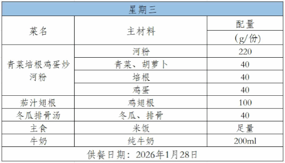 2025-2026学年第一学期第二十一周菜谱(1月19日-1月23日)