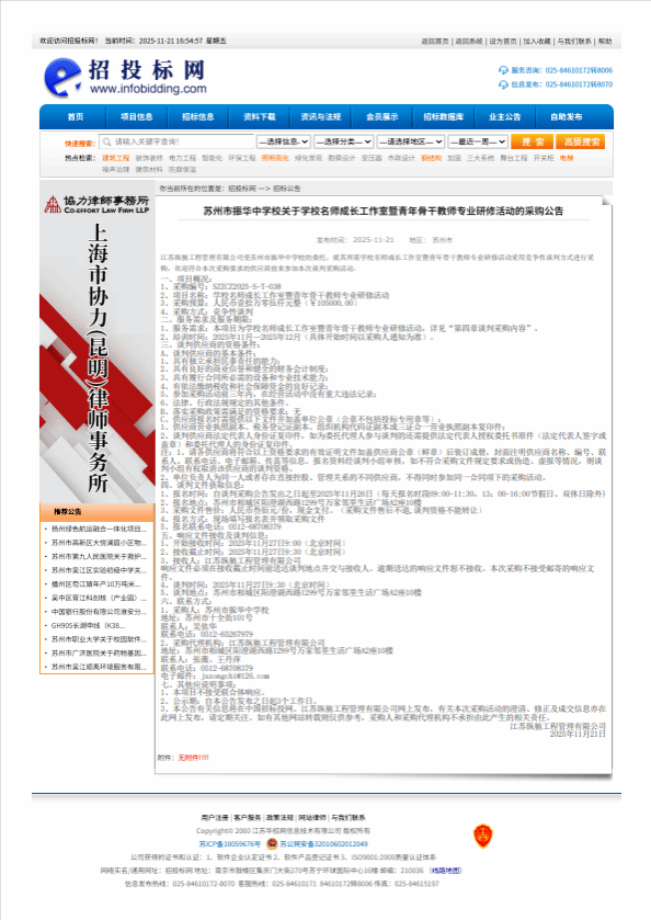 苏州市振华中学校关于学校名师成长⼯作室暨青年骨干教师专业研修活动的采购公告