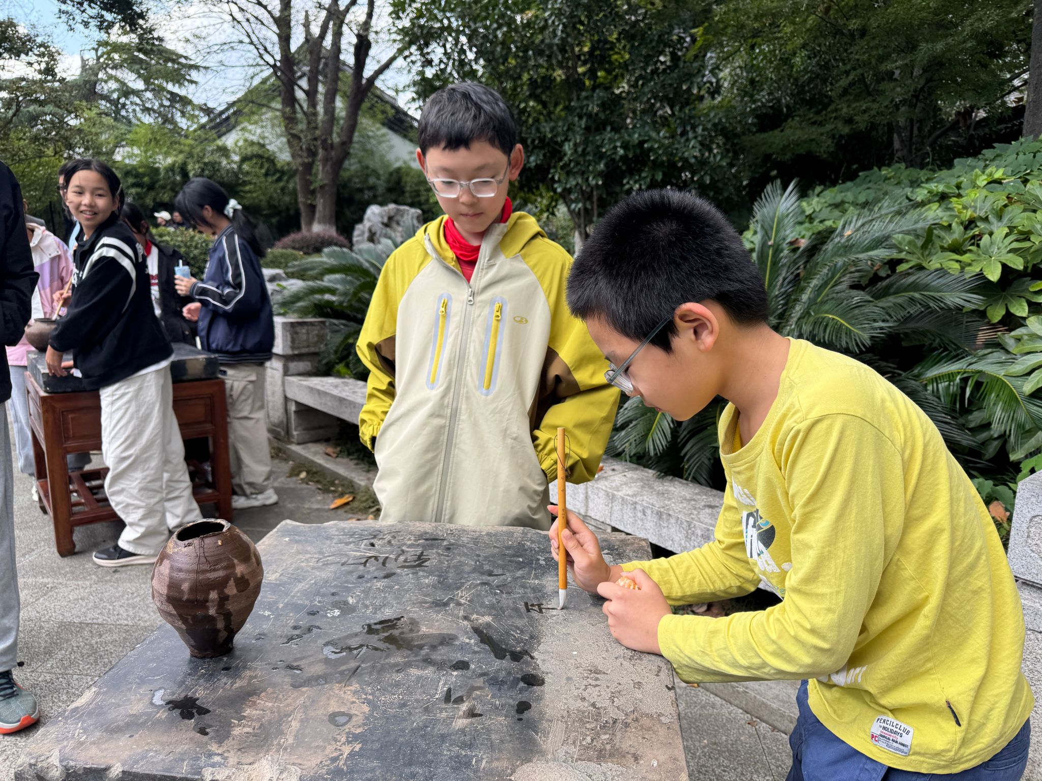 活动过后,同学们认真聆听了王皪老师关于振华御窑金砖历史的讲解,动手体验金砖书写的乐趣。金砖的古朴厚重与书法的灵动飘逸相得益彰,让同学们深刻感受到文化传承与艺术创新的魅力。