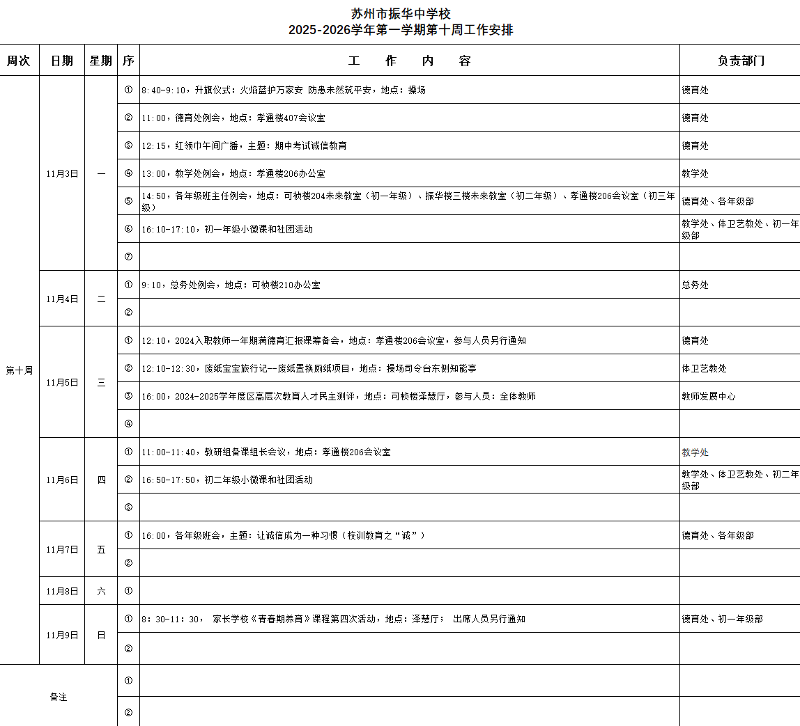 苏州市振华中学校2025-2026学年第一学期 第十周工作安排表