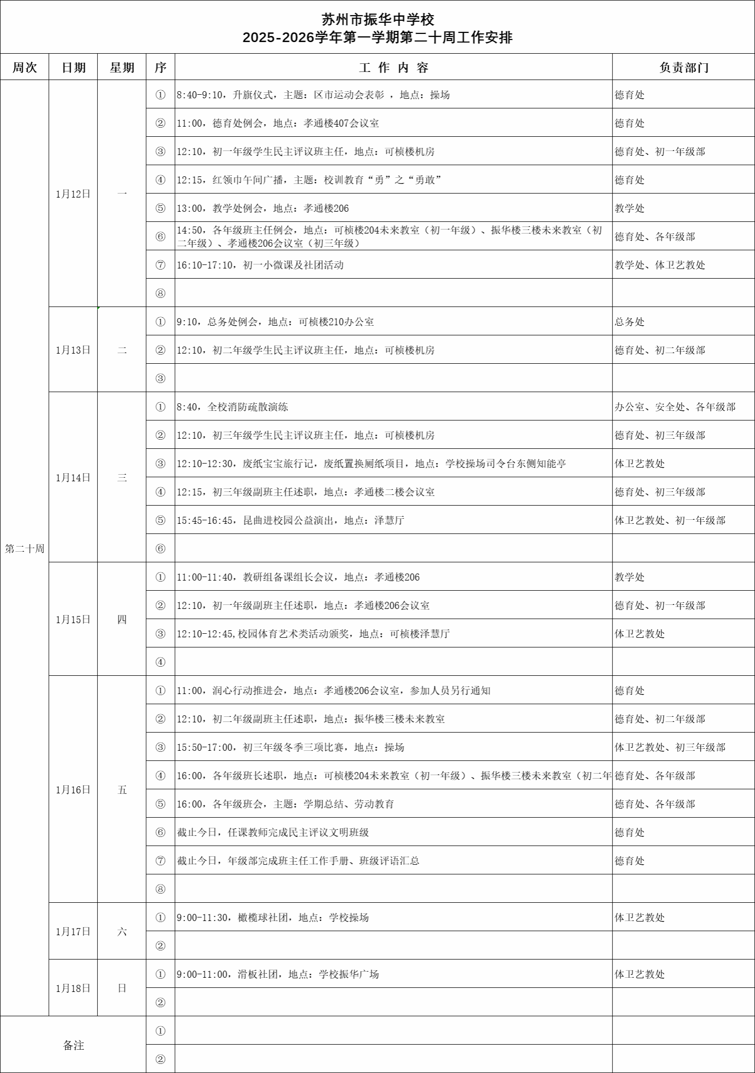 苏州市振华中学校2025-2026学年第一学期 第二十周工作安排表