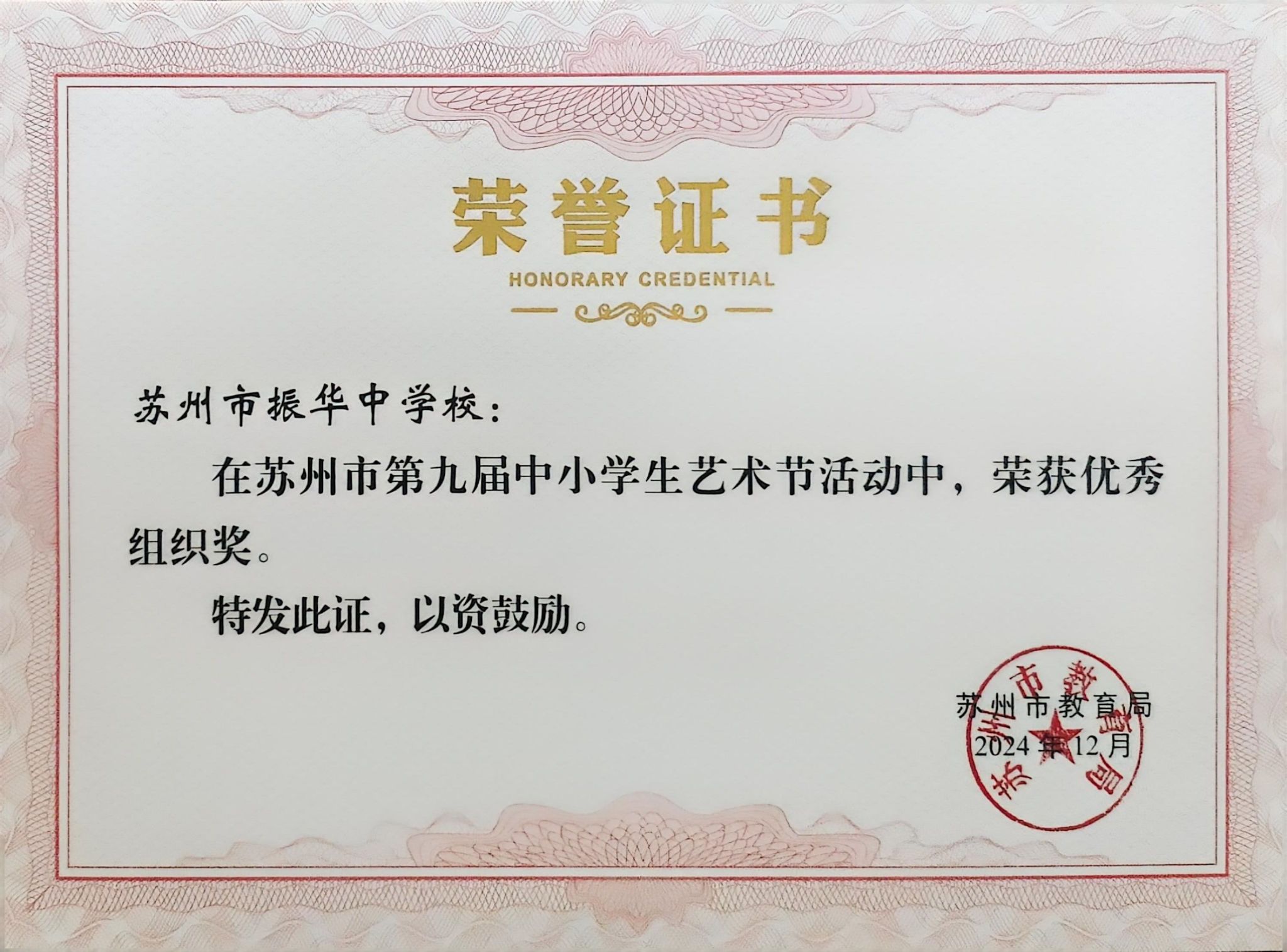 热烈祝贺我校在苏州市第九届中小学生艺术节中荣获优秀组织奖