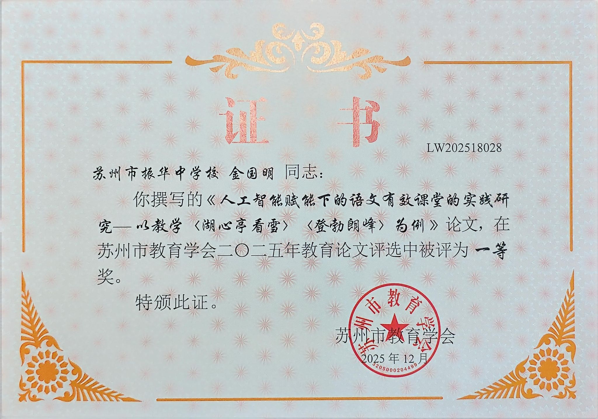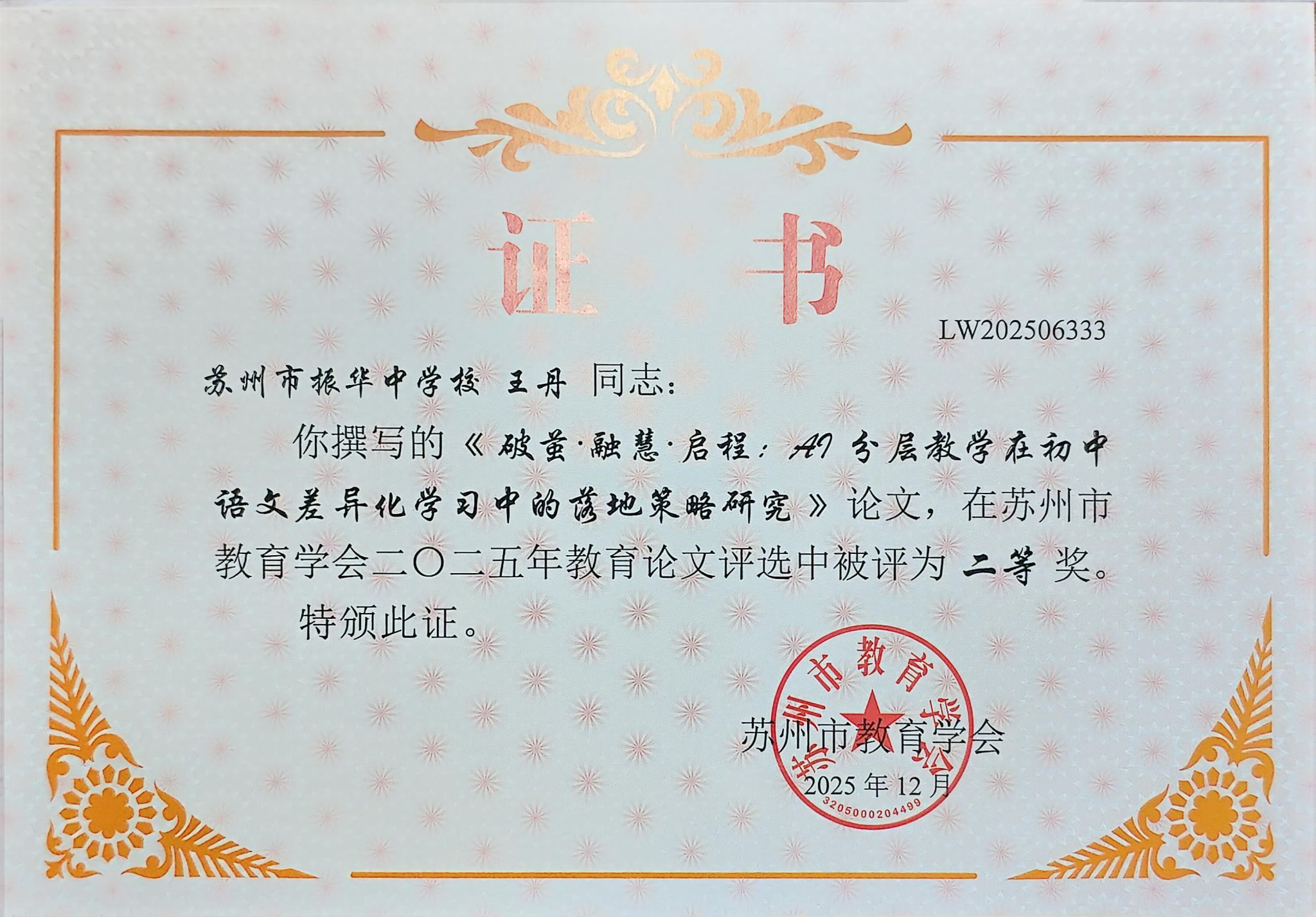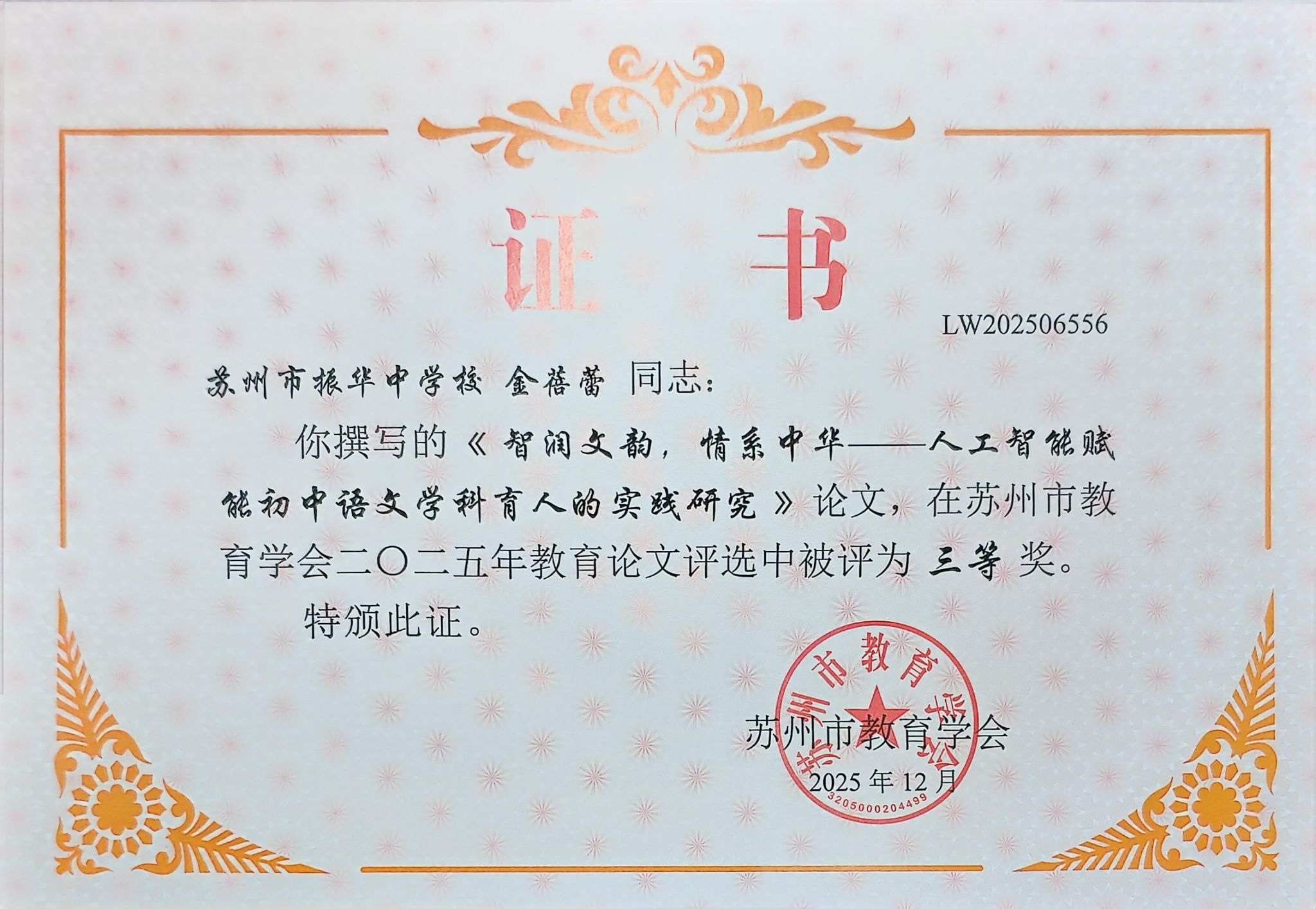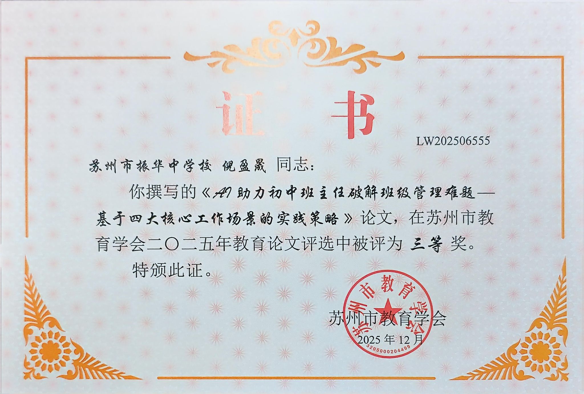 喜报:热烈祝贺我校多名教师在苏州市教育学会2025年教育论文评选中获奖