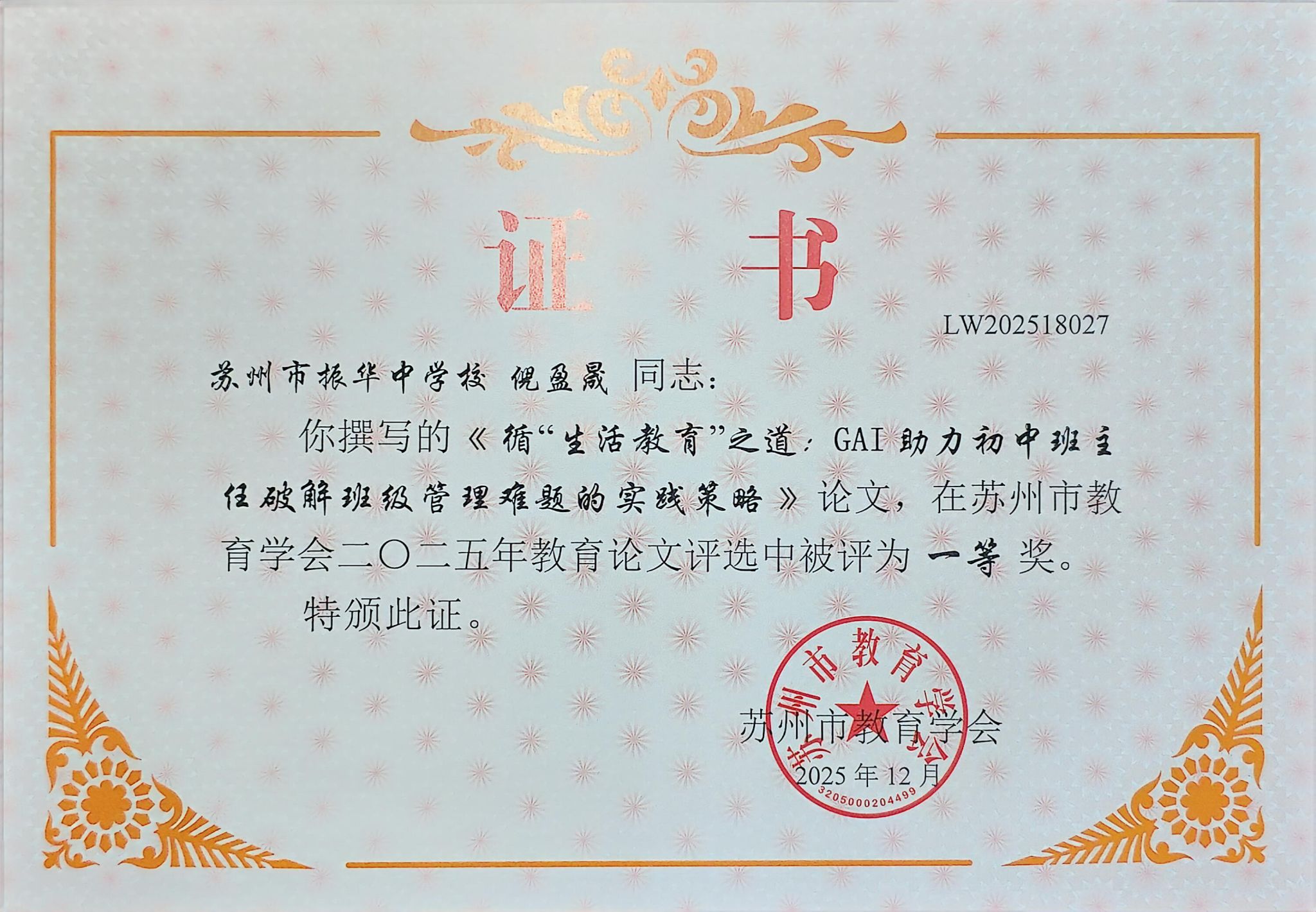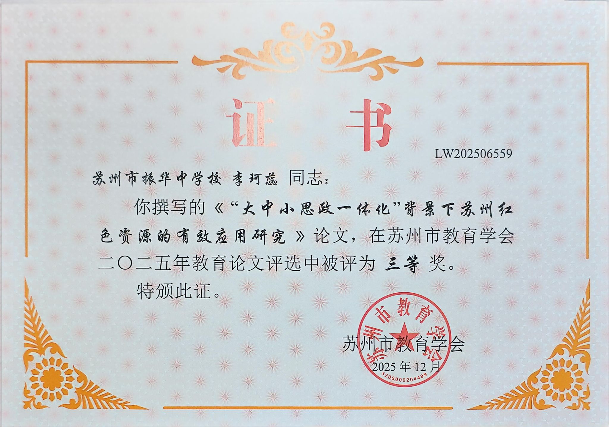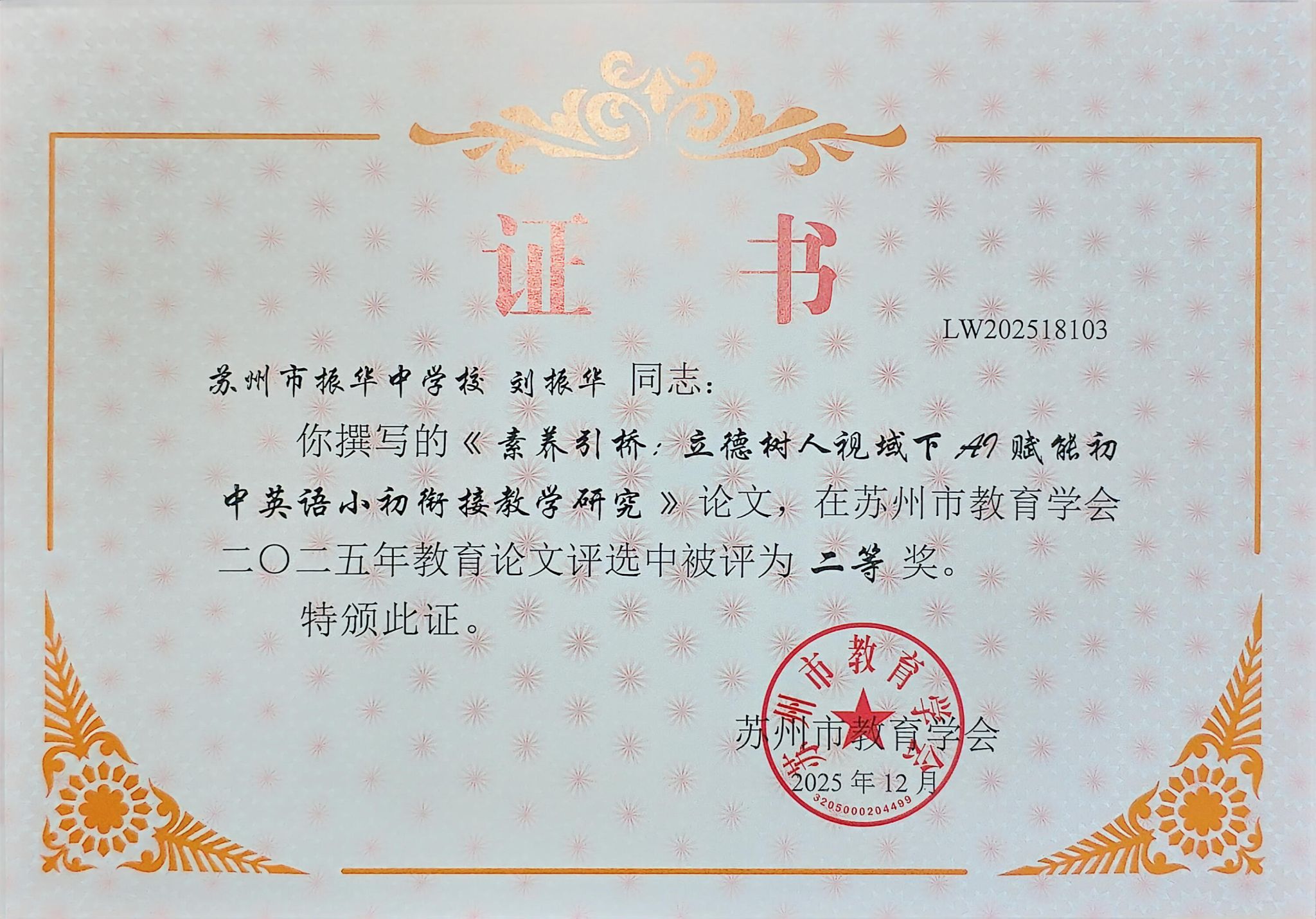 喜报:热烈祝贺我校多名教师在苏州市教育学会2025年教育论文评选中获奖