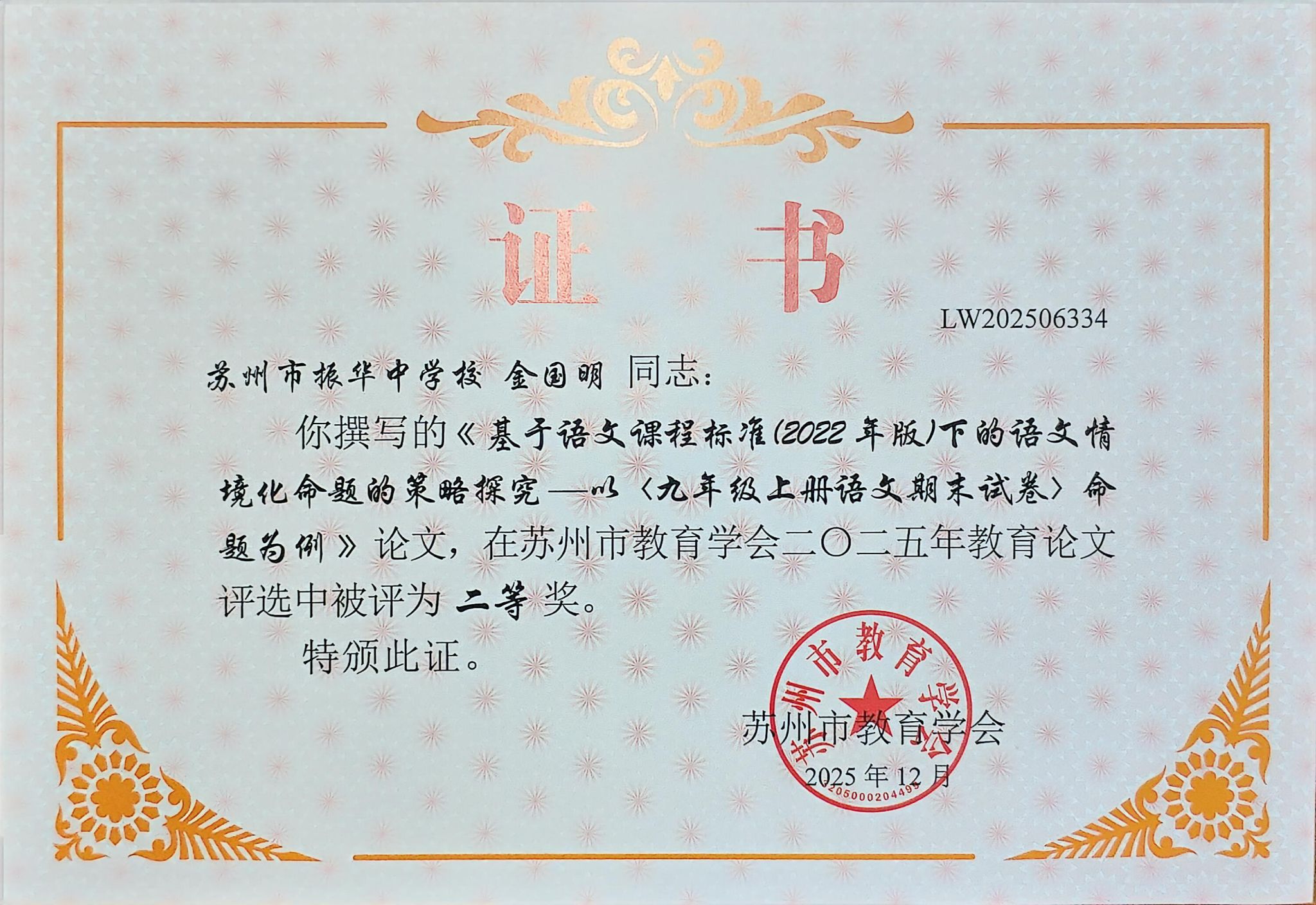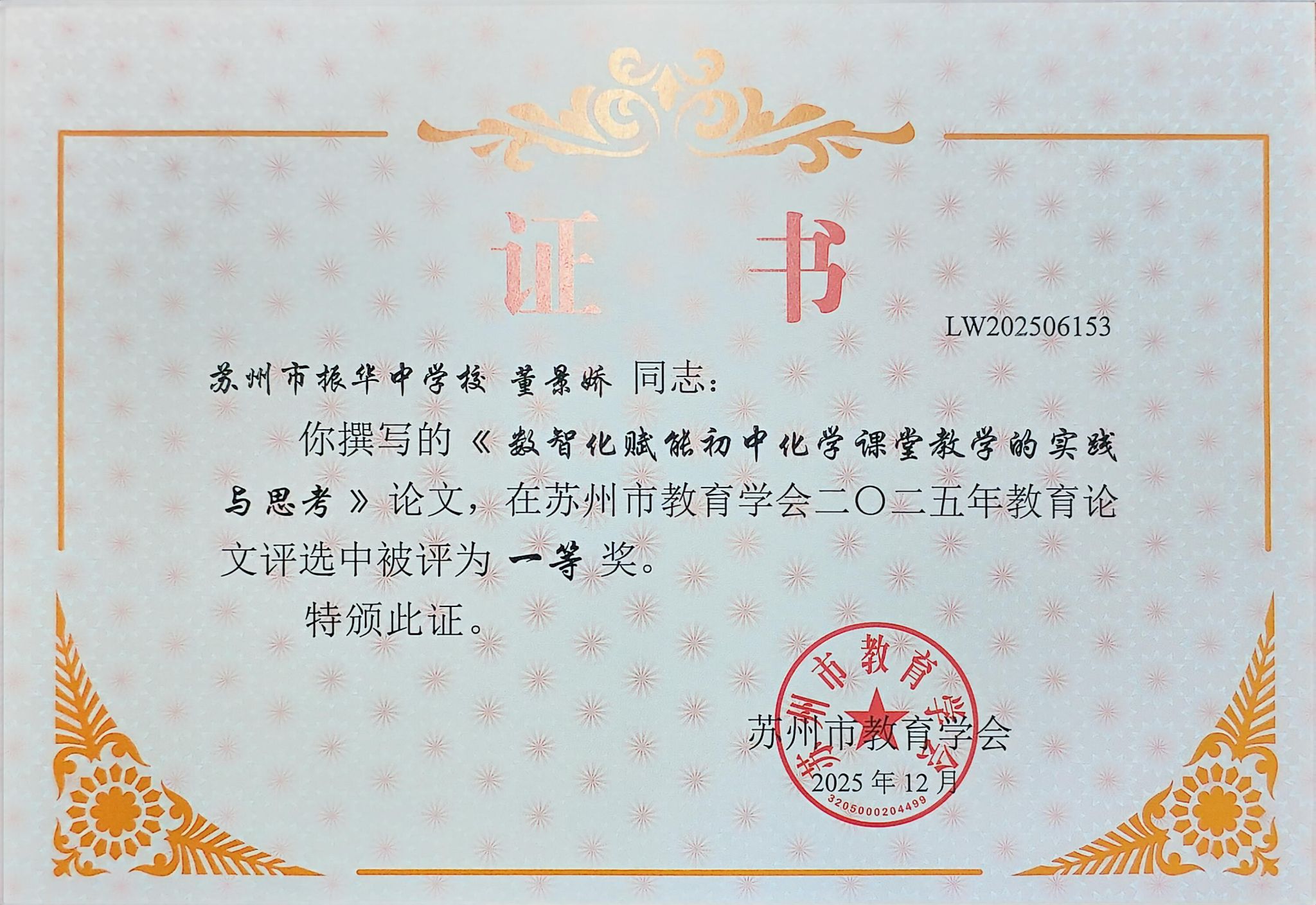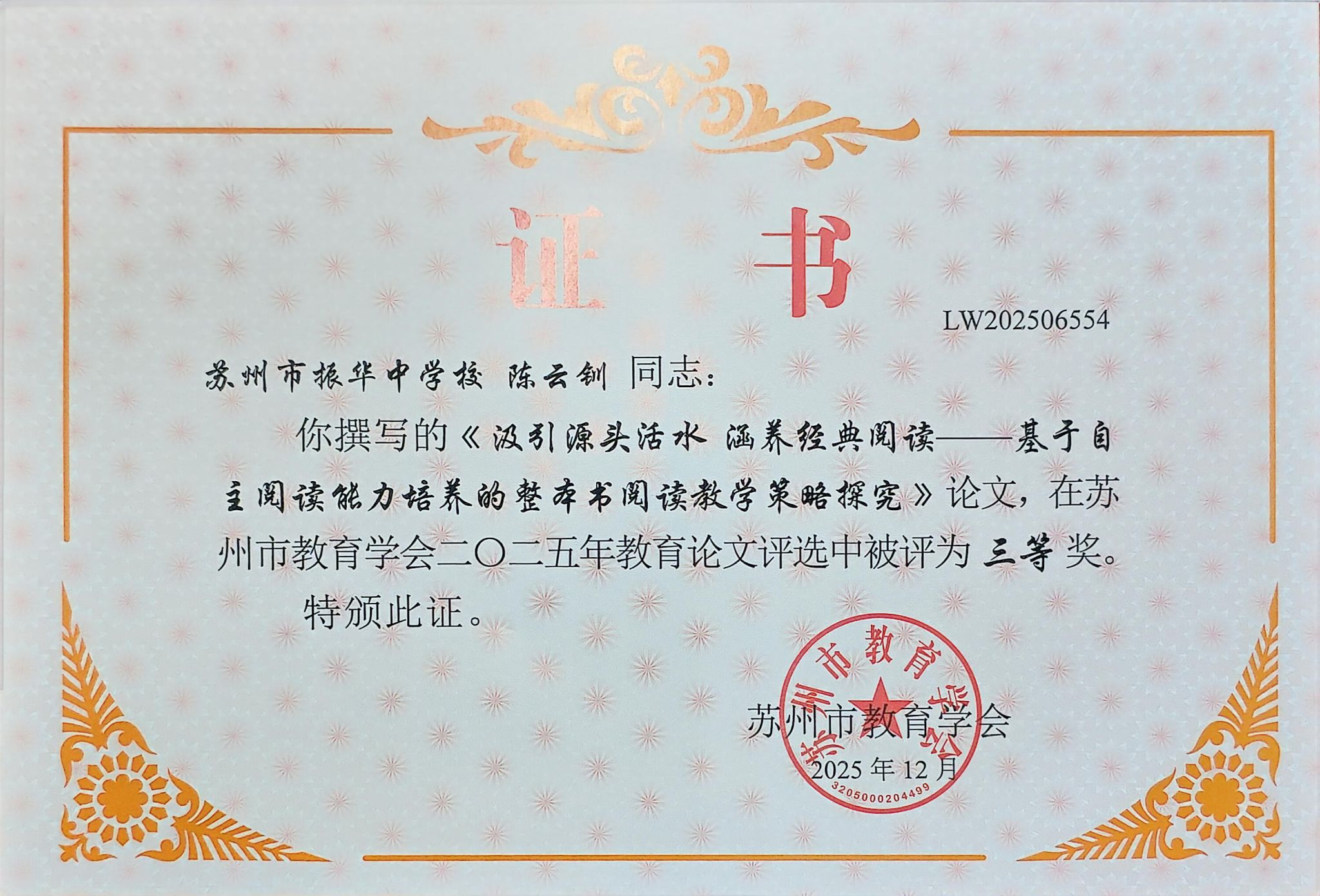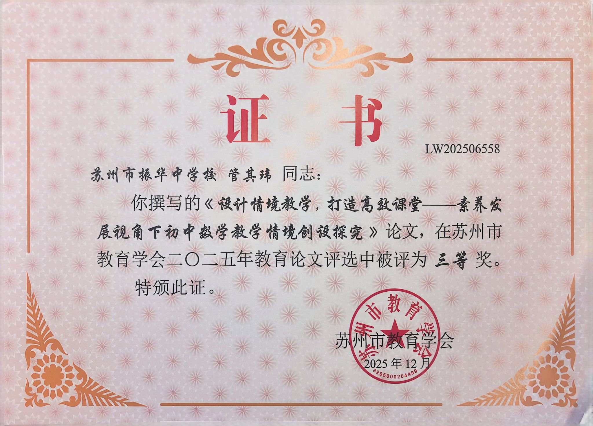 喜报:热烈祝贺我校多名教师在苏州市教育学会2025年教育论文评选中获奖