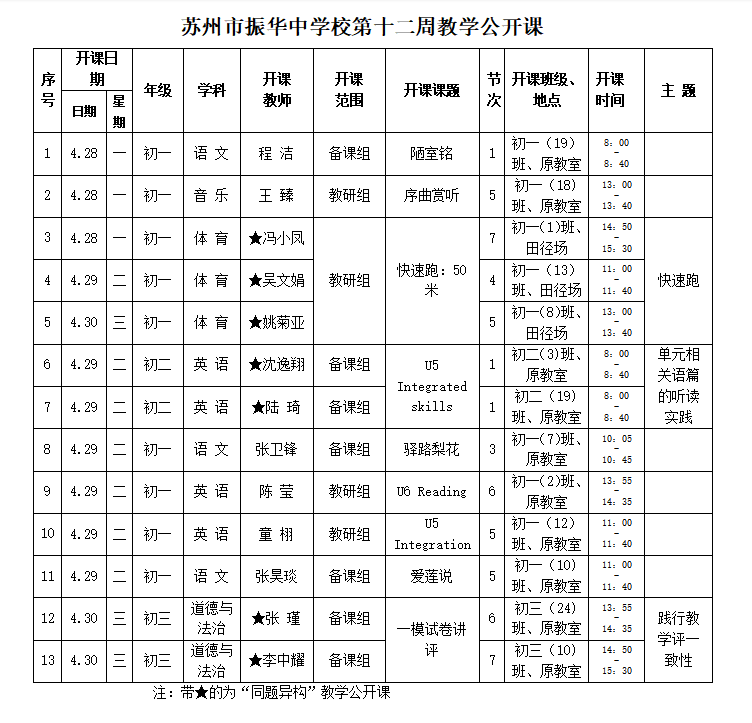 苏州市振华中学校第十二周教学公开课