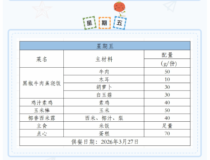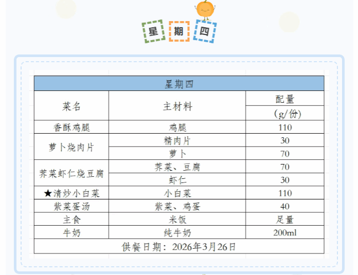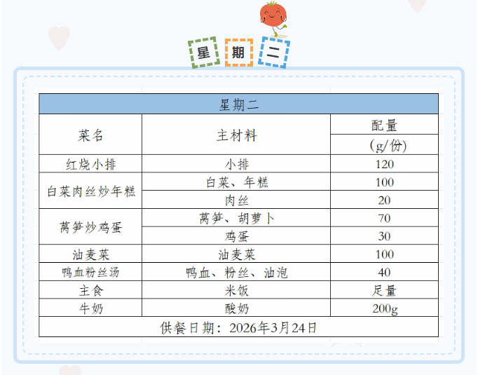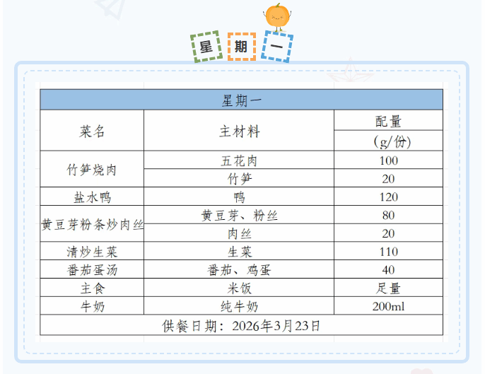 2025-2026学年第二学期第四周菜谱(3月23日-3月27日)