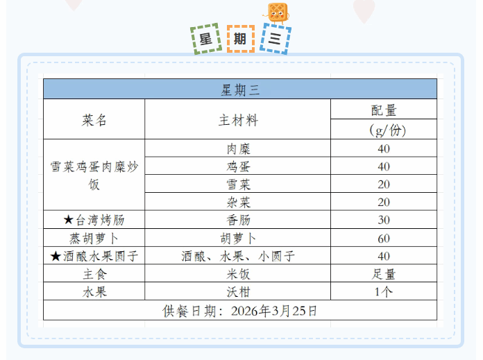 2025-2026学年第二学期第三周菜谱(3月16日-3月20日)