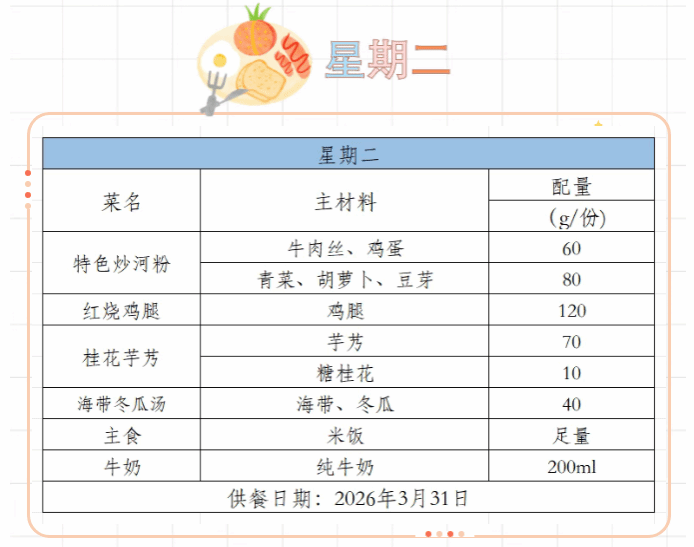 2025-2026学年第二学期第四周菜谱(3月23日-3月27日)