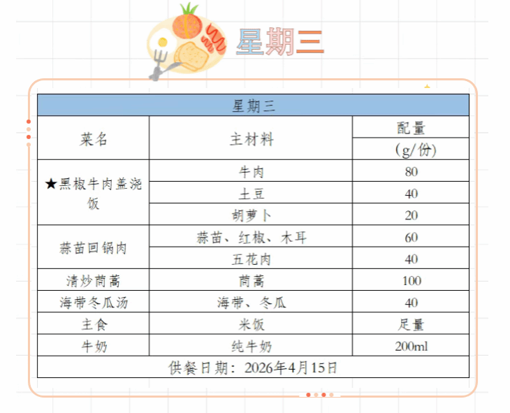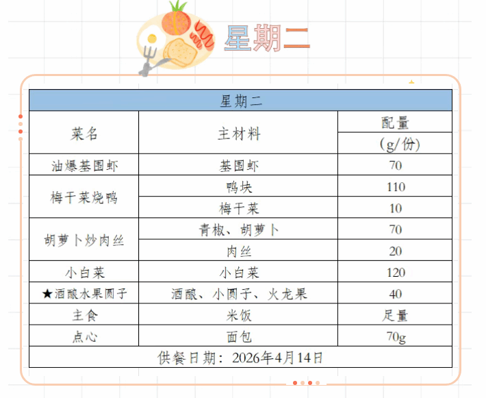 2025-2026学年第二学期第六周菜谱(4月7日-4月10日)
