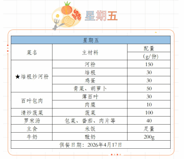 2025-2026学年第二学期第七周菜谱(4月13日-4月17日)