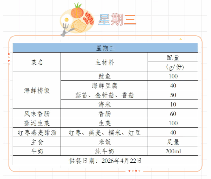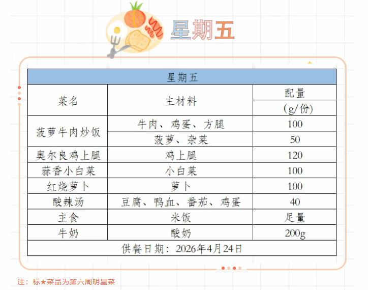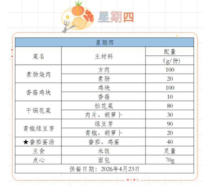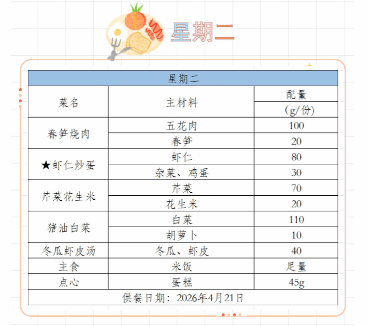 2025-2026学年第二学期第八周菜谱(4月20日-4月24日)