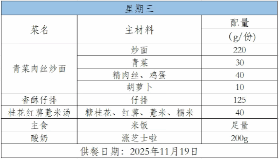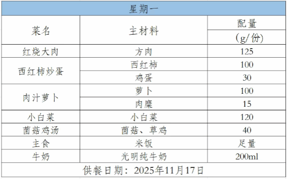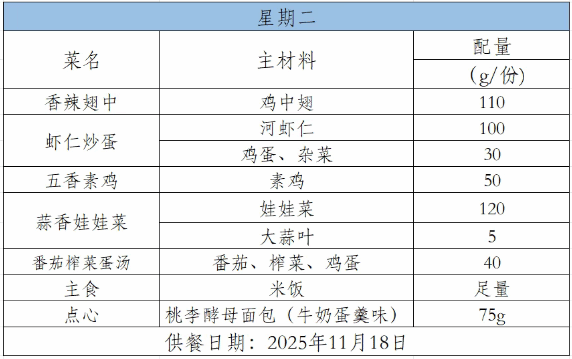 2025-2026学年第一学期第十一周菜谱(11月10日-11月14日)