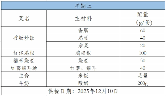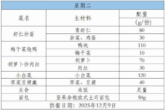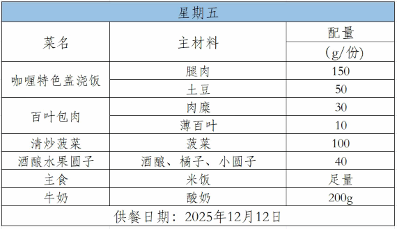 2025-2026学年第一学期第十五周菜谱(12月8日-12月12日)