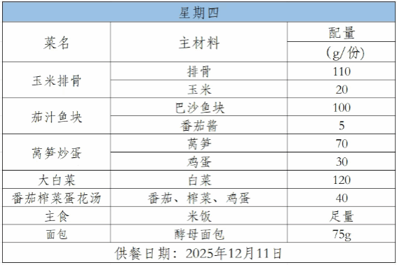 2025-2026学年第一学期第十四周菜谱(12月1日-12月5日)