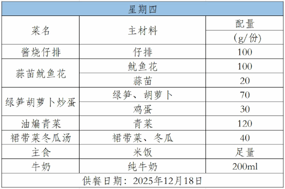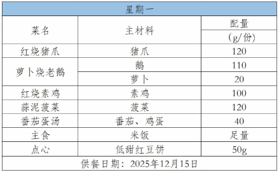 2025-2026学年第一学期第十五周菜谱(12月8日-12月12日)