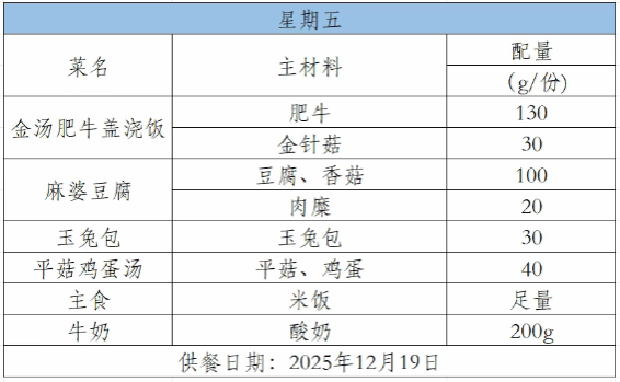 2025-2026学年第一学期第十六周菜谱(12月15日-12月19日)