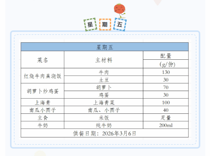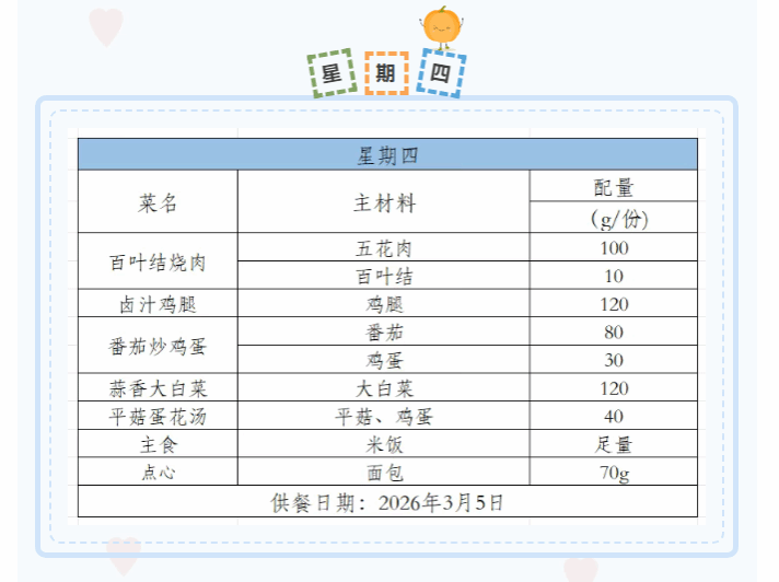 2025-2026学年第二学期第一周菜谱(3月4日-3月5日)
