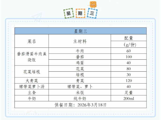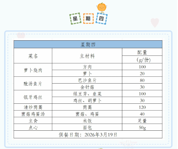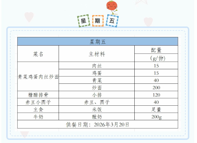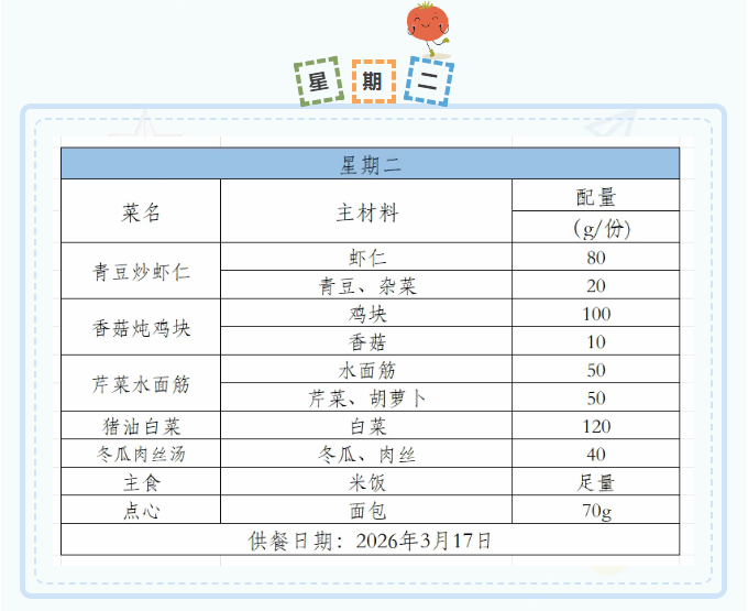 2025-2026学年第二学期第三周菜谱(3月16日-3月20日)