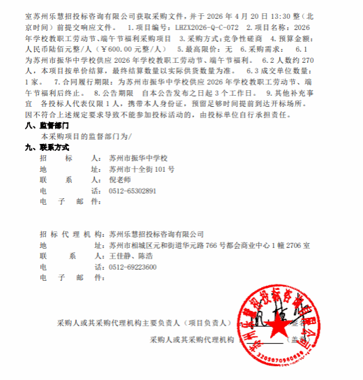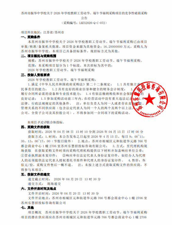 2026年学校教职工劳动节、端午节福利采购招标采购公告