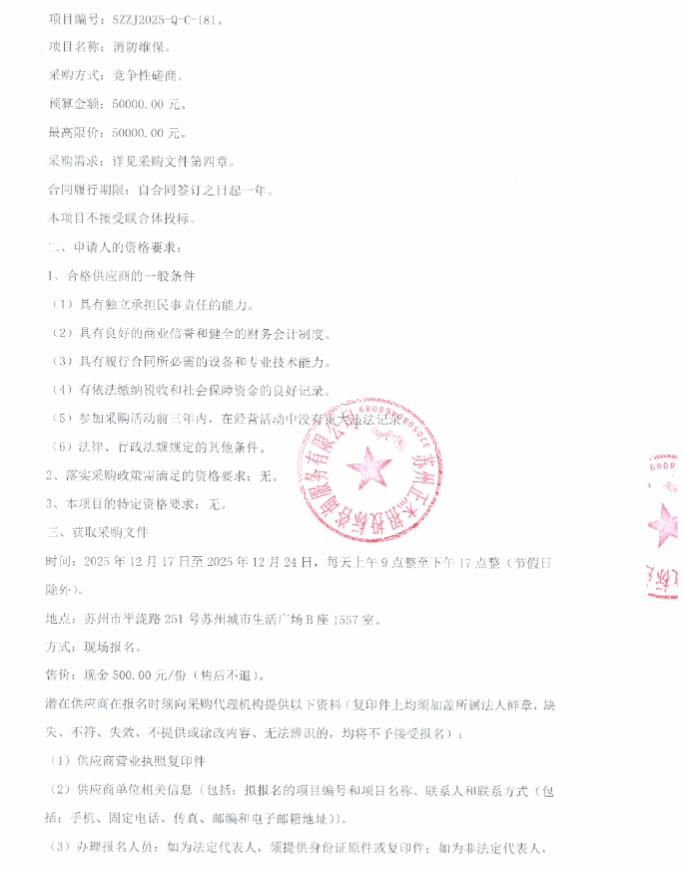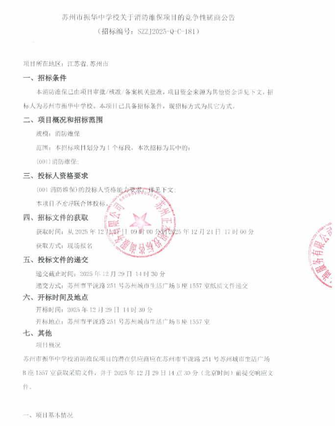 苏州市振华中学校关于消防维保项目的竞争性磋商公告