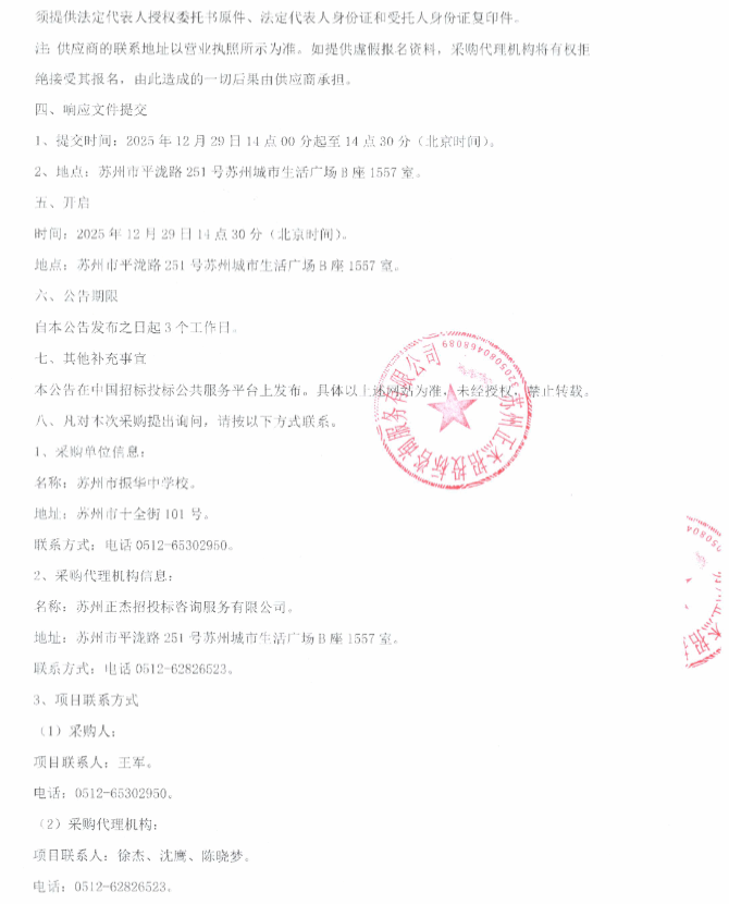苏州市振华中学校关于文印设备全包服务项目的竞争性磋商采购公告