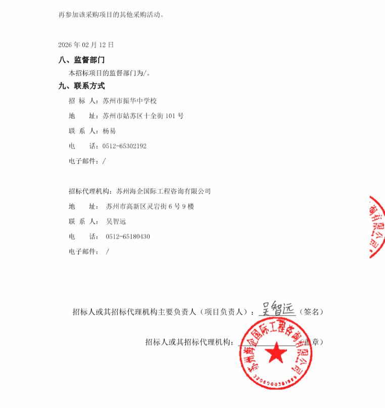 苏州市振华中学校关于2026年度零星维修项目的成交公告