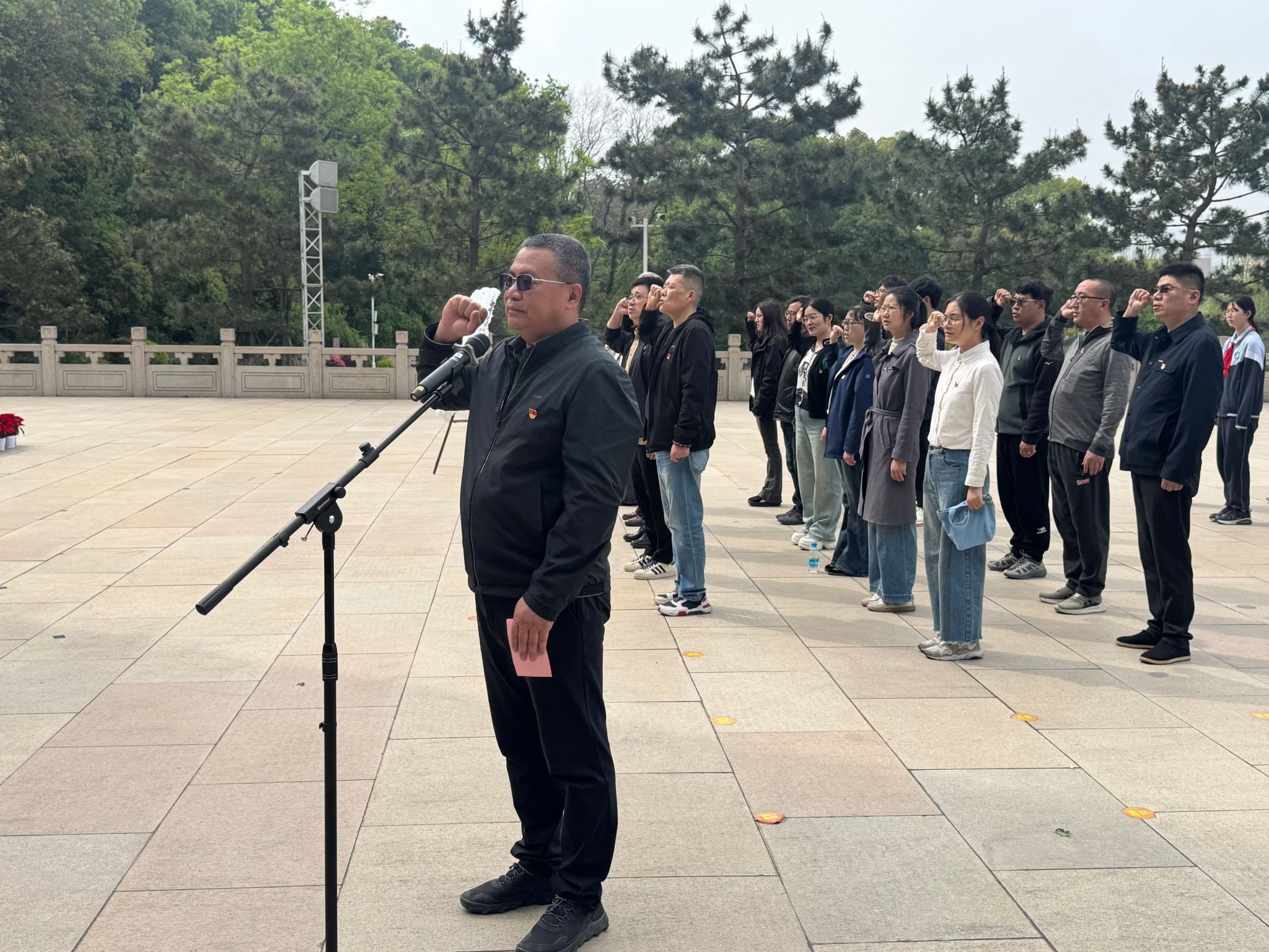 活动伊始,全体党员教师在学校党委唐曜书记带领下,面向党旗重温了入党誓词;入团积极分子代表在团委陶璇书记带领下庄严宣誓,铿锵誓言响彻陵园。随后,唐曜书记寄语师生:勉励学生铭记历史、崇尚英雄,锤炼品德修为,努力成长为担当民族复兴大任的时代新人;希望教师坚守育人初心,传承红色基因,立足岗位立德树人,为党育人、为国育才。