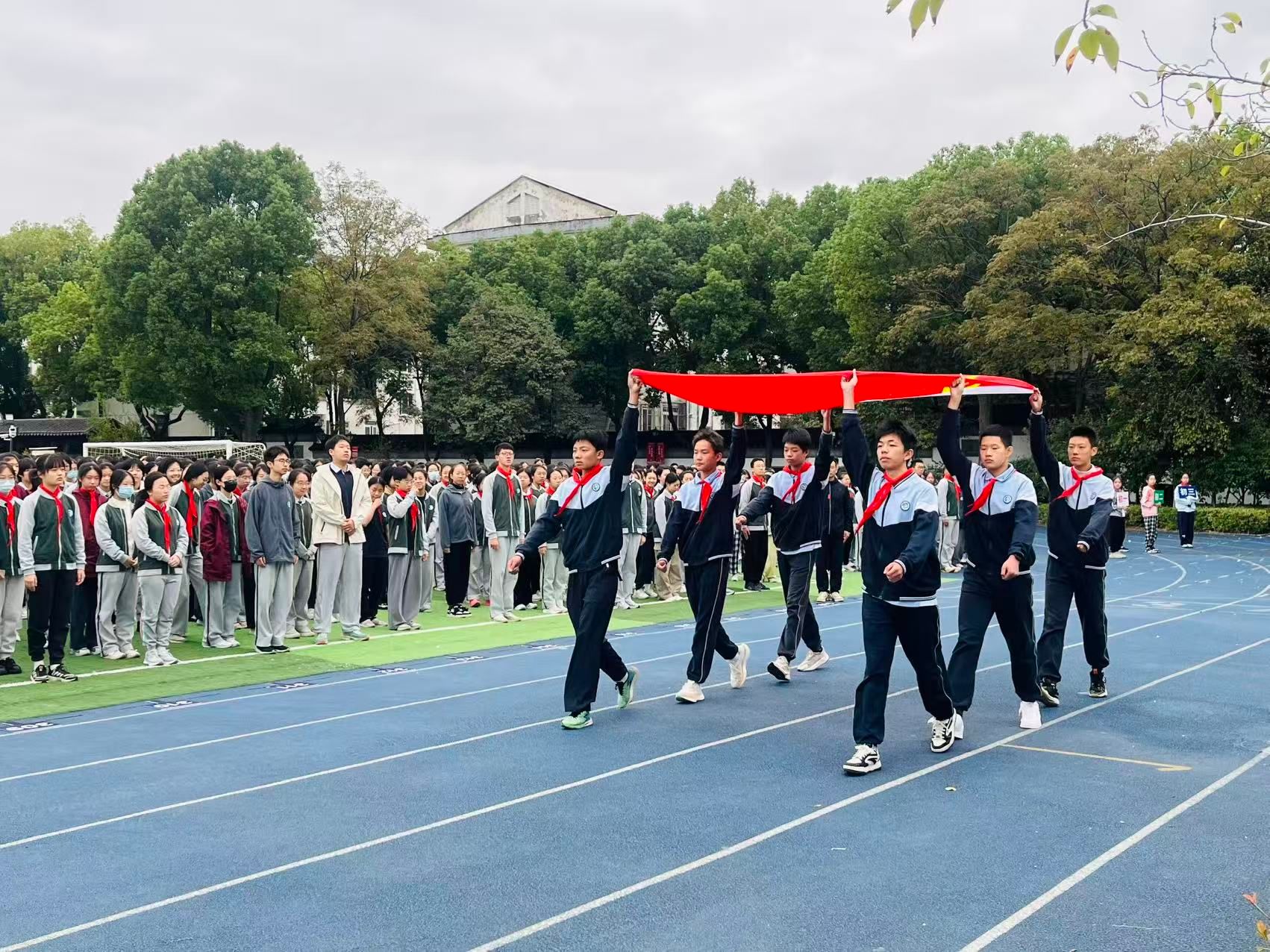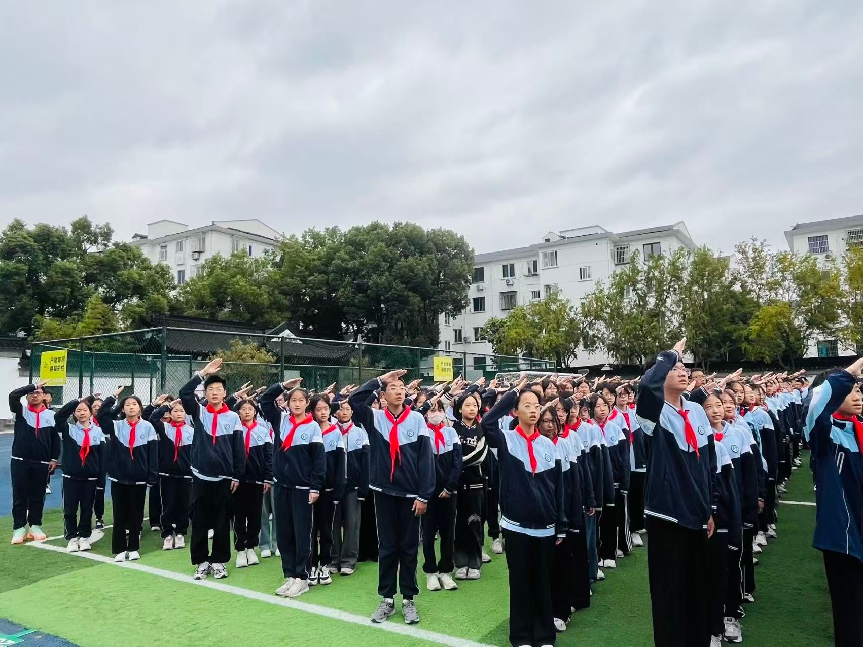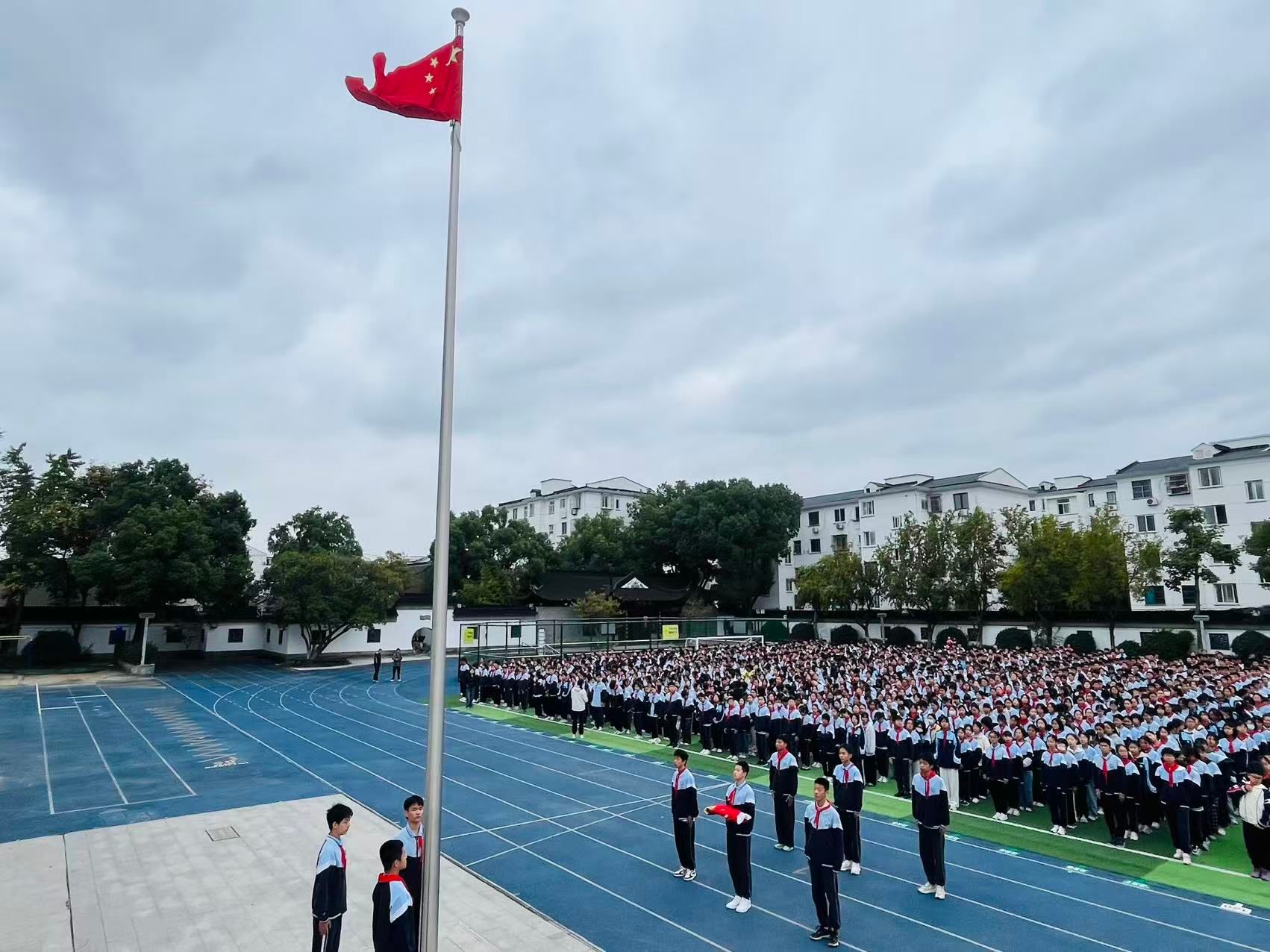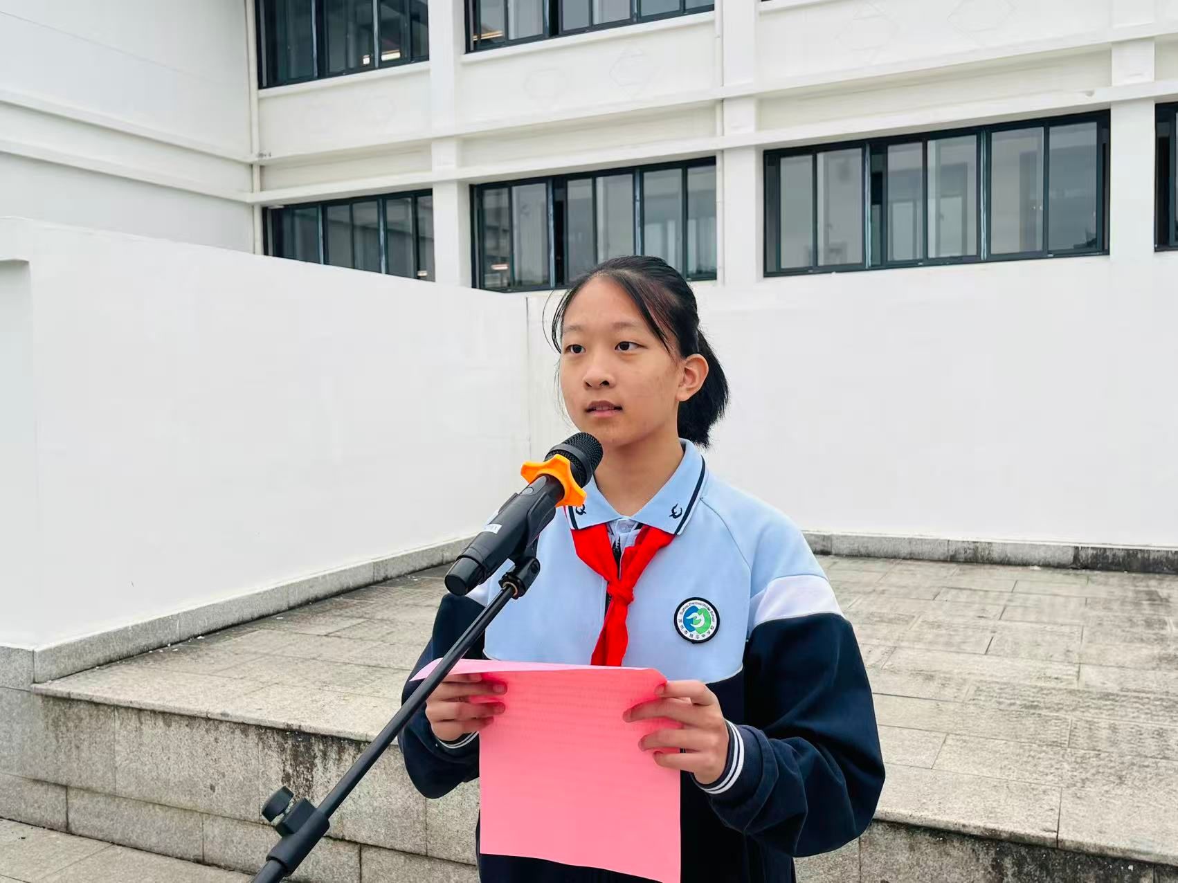 清晨的操场上,国旗班同学迈着铿锵有力的步伐护送国旗入场。伴随着庄严的国歌,五星红旗冉冉升起,全体师生肃立注目,少先队员行队礼,齐声高唱国歌。初二(3)班学生代表苏钰汐发表国旗下演讲,带领师生重温那段烽火岁月。抗美援朝精神是中华民族宝贵的精神财富,激励着新时代青少年坚定信念、勇担使命,她呼吁同学们要珍惜当下来之不易的和平岁月,继承和弘扬伟大的抗美援朝精神,勤奋学习,锻炼体魄,锤炼意志,把对英雄的崇敬转化为报效祖国的实际行动!