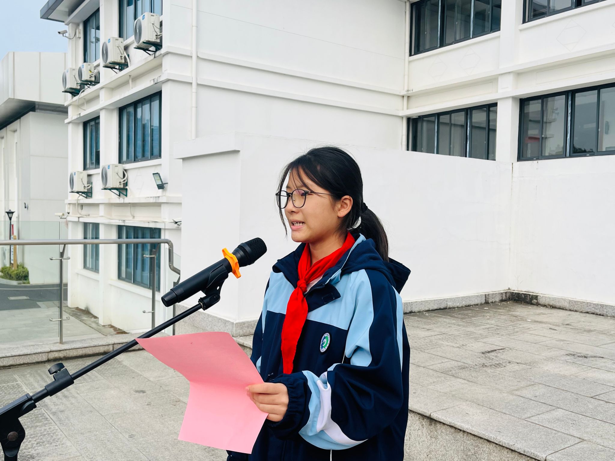 初二(4)班学生代表李雨馨同学进行国旗下演讲,带领师生深入了解重阳节的文化故事。她呼吁同学们要在历史长河中汲取奋进力量,以“润德”之心,将孝亲敬老的美德延伸到更广阔的天地,做有温度的传承者,做敢担当的“仁勇少年”!