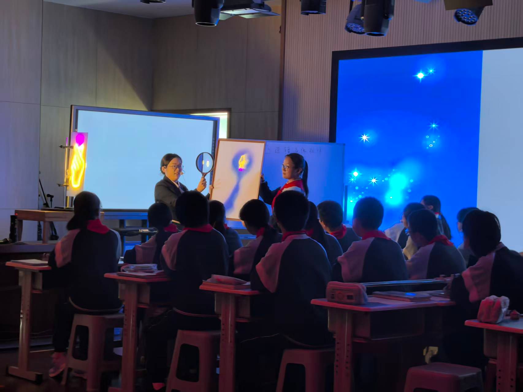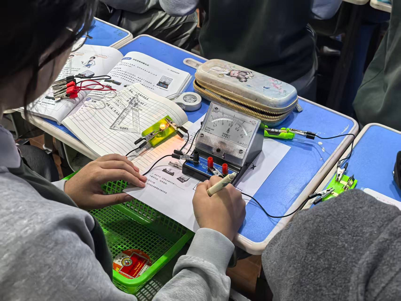 我校殷勇老师,讲授了物理课《电流和电流表》,为培训拉开帷幕。殷老师别出心裁,化身魔术师,带领学生踏入电学的奇幻世界。郭梦如老师讲授了《凸透镜成像规律》,以“心意灯牌”作为课堂引入,让学生直观感受到凸透镜成像的特点,通过演示和分组实验,系统梳理了凸透镜成像的动态规律。