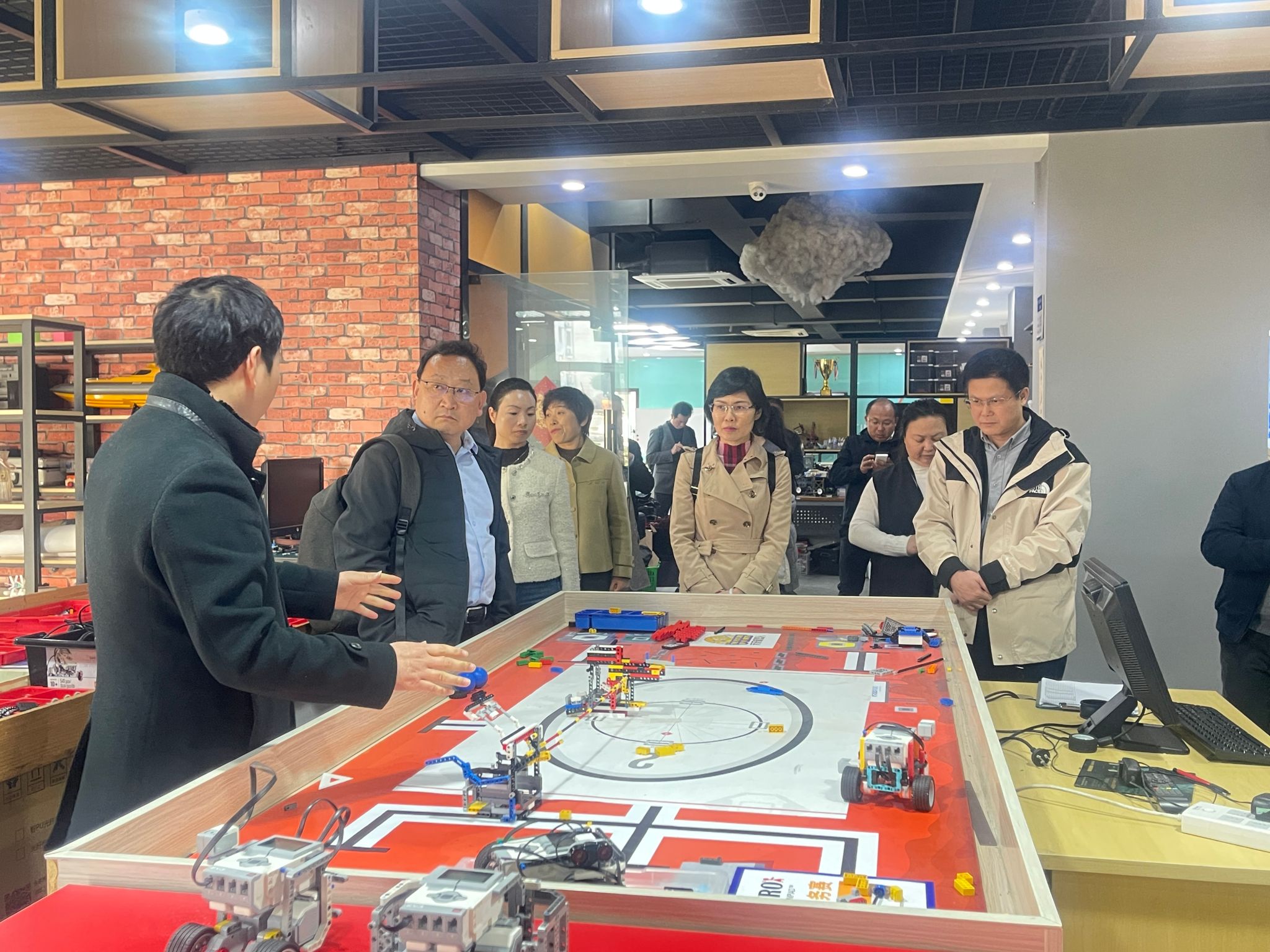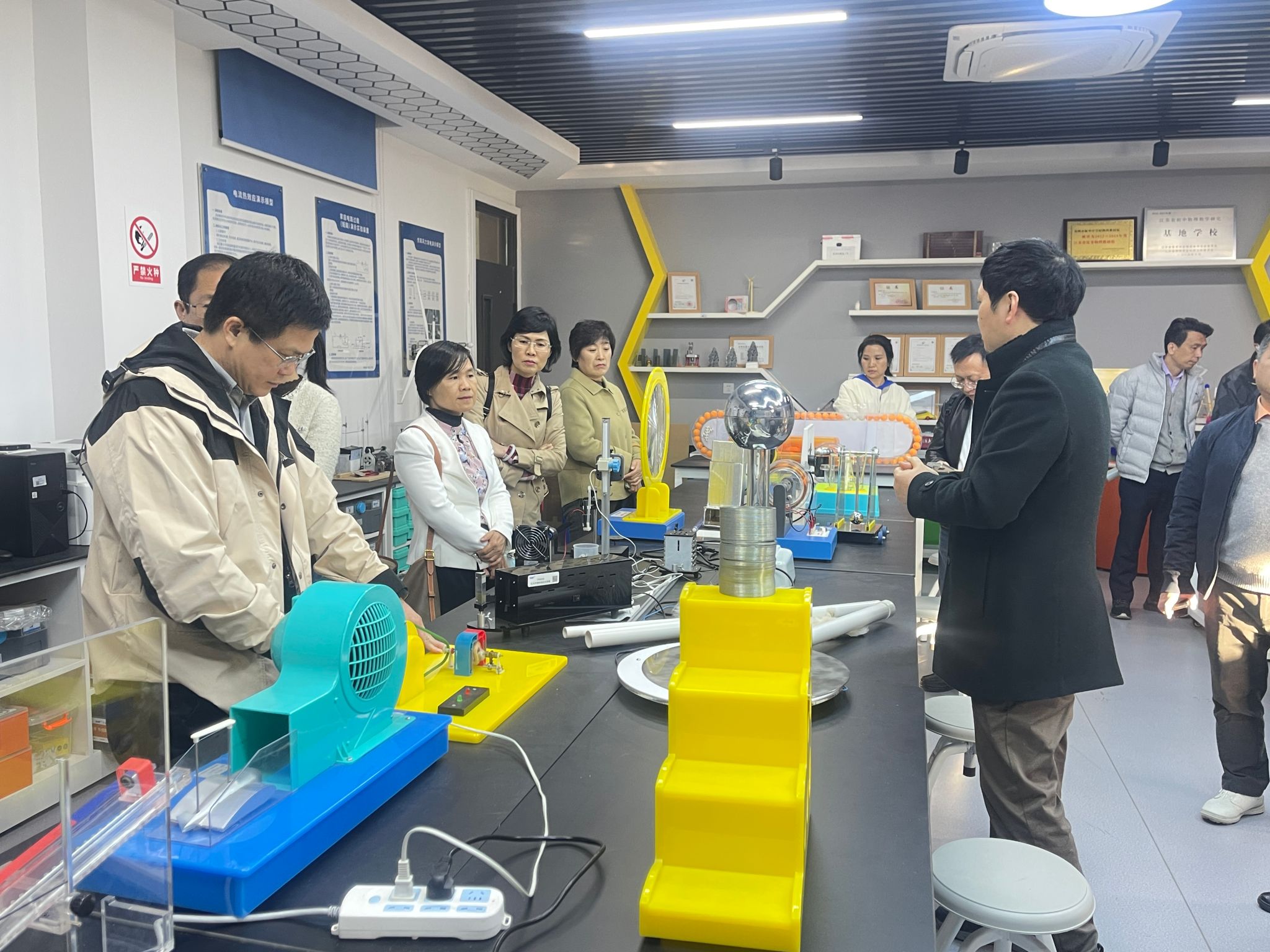 姑苏区初中物理名师工作室领衔人程建军老师向校长团介绍了学校创客空间及物理创新实验室,并系统阐述了我校省初中物理学科发展示范中心的建设情况、课程体系架构,以及在物理活动课程开发与实施中的实践探索和丰硕成果。