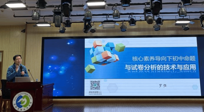随后,原苏州市教育质量监测中心主任罗强为全体教师作了题为《核心素养导向下初中命题与试卷分析的技术与应用》的专题培训。罗主任结合实例深入分析了中考命题改革趋势,系统阐释核心素养理念在命题设计中的落地路径,依托现代技术手段,全面解析监测试卷的命题规范和实践策略。此次培训,为一线教师命题能力提升提供了科学指引,也为深化教育评价改革提供了新思路。