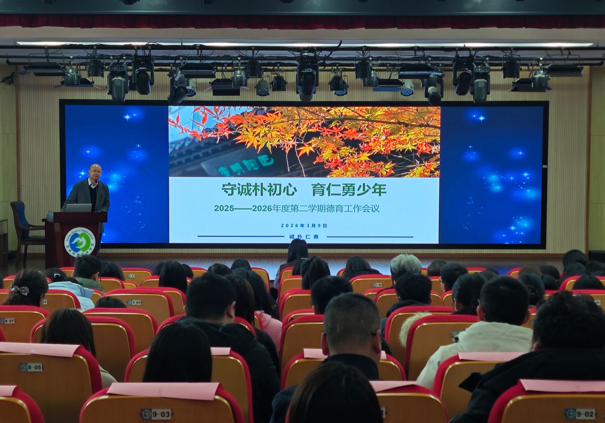 为明确新学期德育工作方向,统筹推进各项德育工作顺利开展,切实提升班主任工作实效,2026年3月9日下午,学校2025-2026学年第二学期全校班主任工作会议在泽慧厅召开。会议由德育处金蓓蕾主任主持,周晓慧副校长、各年级德育分管干部及全体班主任参会。