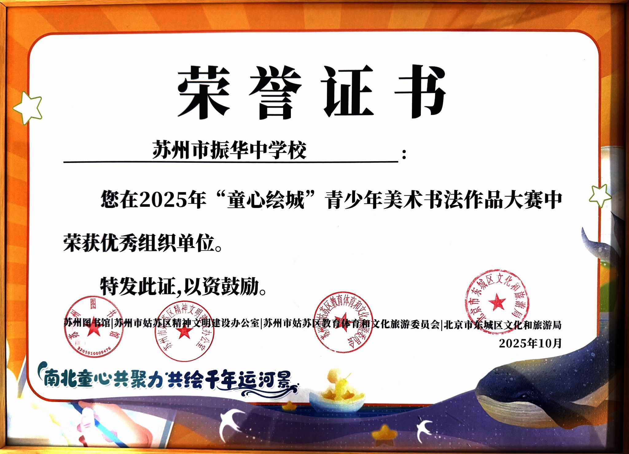 热烈祝贺我校荣获2025年“童心绘城”青少年美术书法作品大赛优秀组织单位