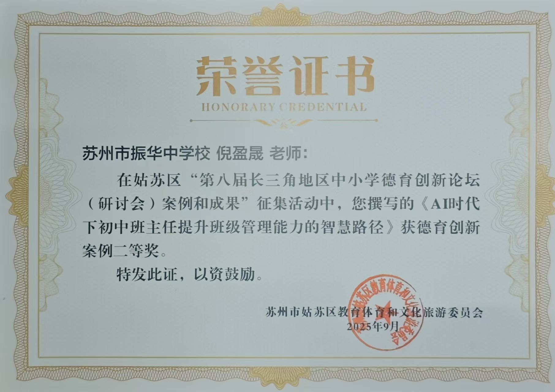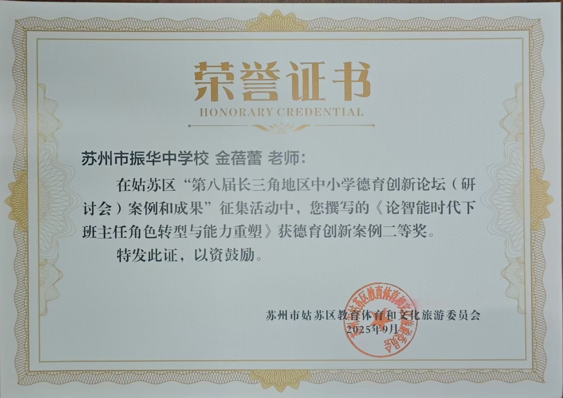 喜报:热烈祝贺我校多名教师在姑苏区“第八届长三角地区中小学德育创新论坛(研讨会)案例和成果”征集活动中荣获德育创新案例二等奖!