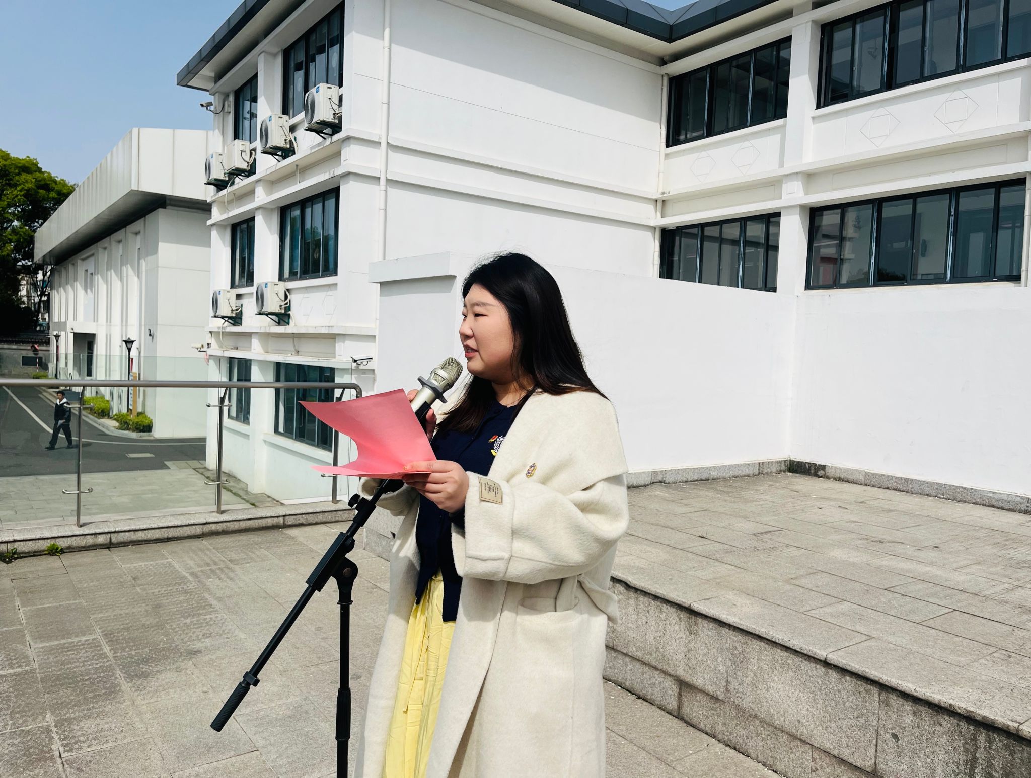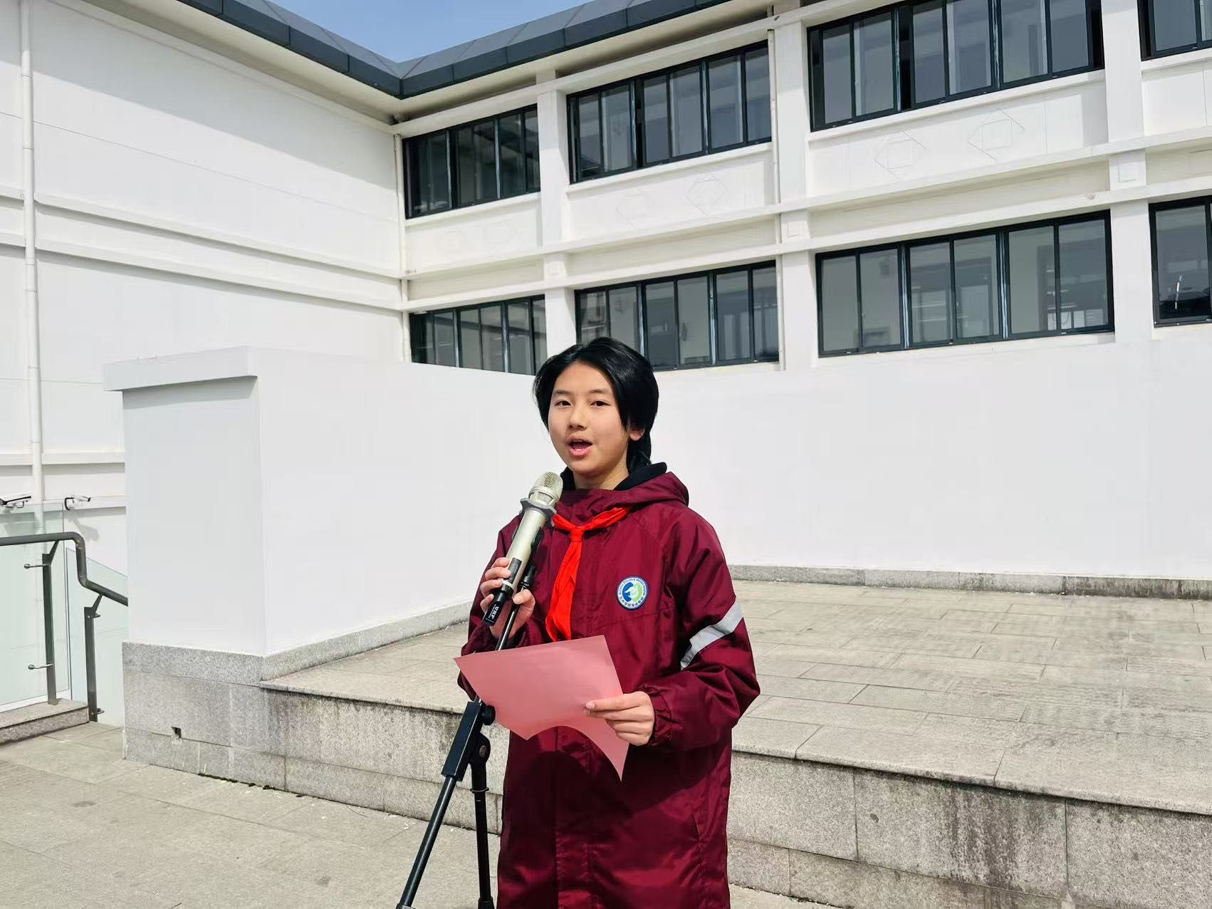 为厚植家国情怀,传承红色基因, 2025年3月31日星期一上午,苏州市振华中学校举办了 “清明祭英烈 丰碑励青春”主题升旗仪式,本次升旗仪式由学校少先队大队辅导员李言老师主持。